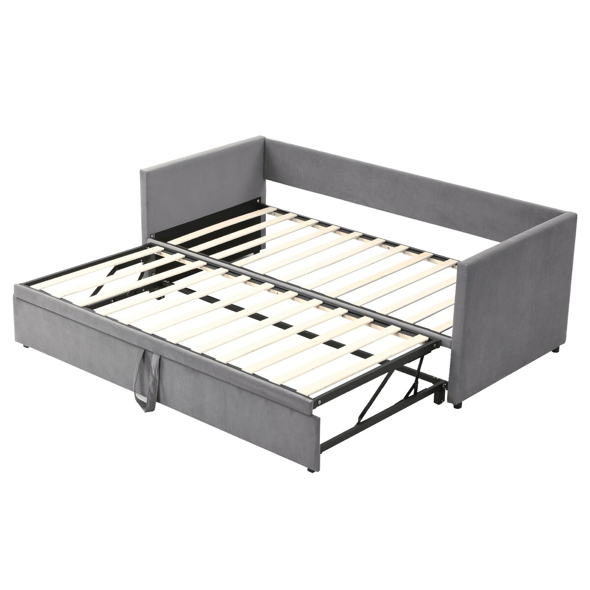 Polsterbett Ausziehbares Schlafsofa 90/180 * 200 cm mit Lattenrosten, Multifunktionsbett aus hautfreundlichem Samtstoff Grau