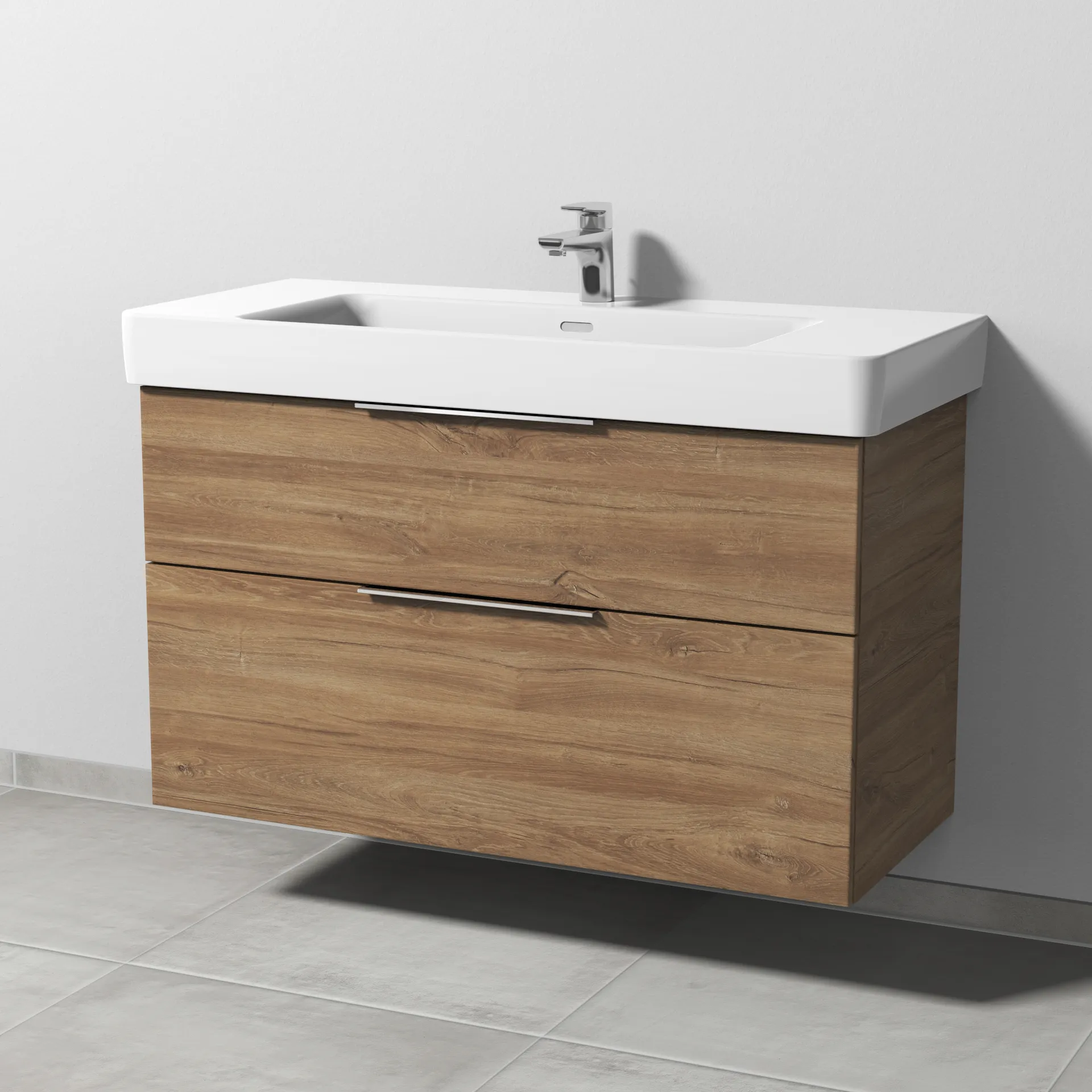 Sanipa Waschtischunterschrank „3way“ passend zu Keramik-Waschtische Pro A von Laufen 950 × 588 × 447 mm in Eiche Nordic