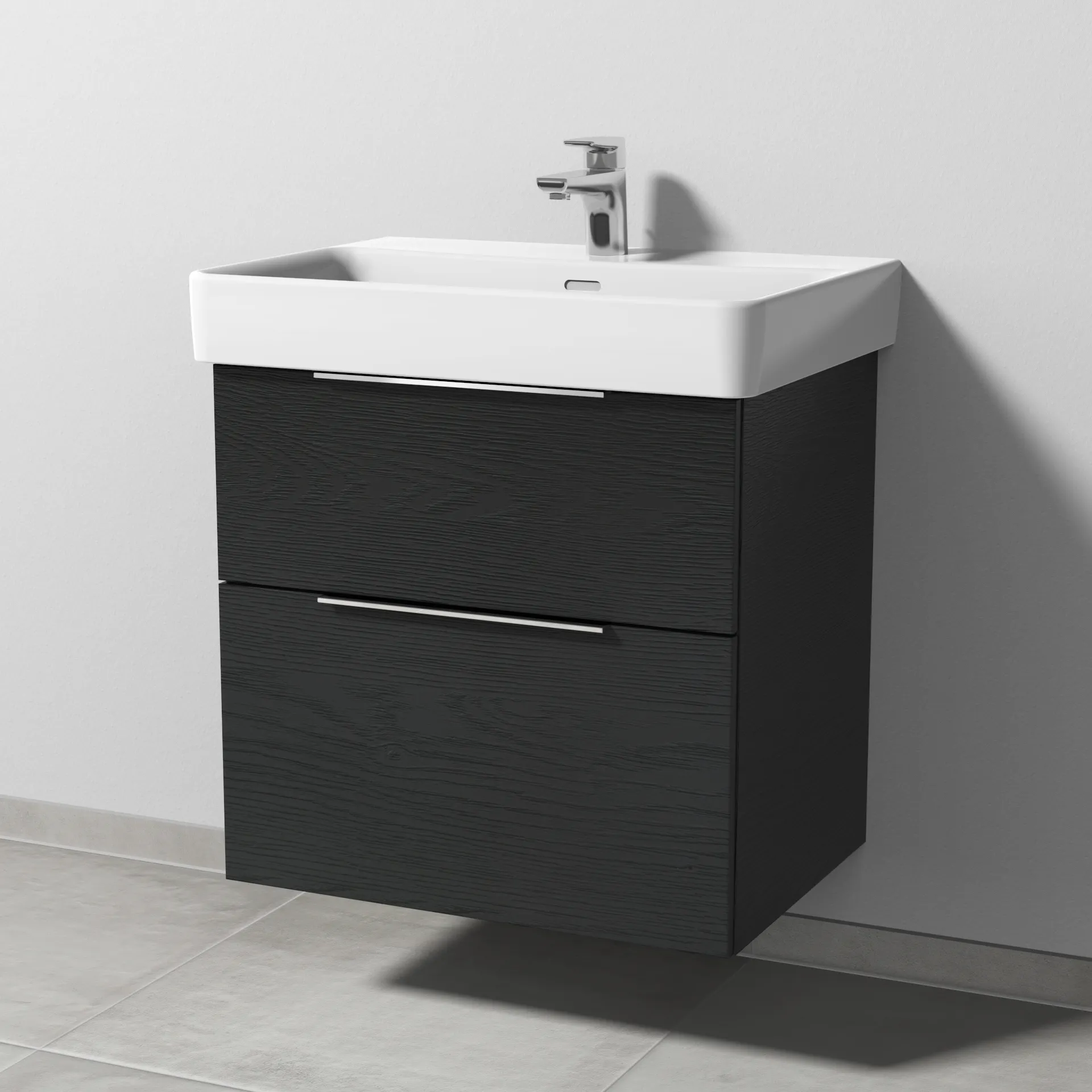 Sanipa Waschtischunterschrank „3way“ passend zu Keramik-Waschtische Pro S von Laufen 600 × 593 × 437 mm in Black Oak, Becken mittig