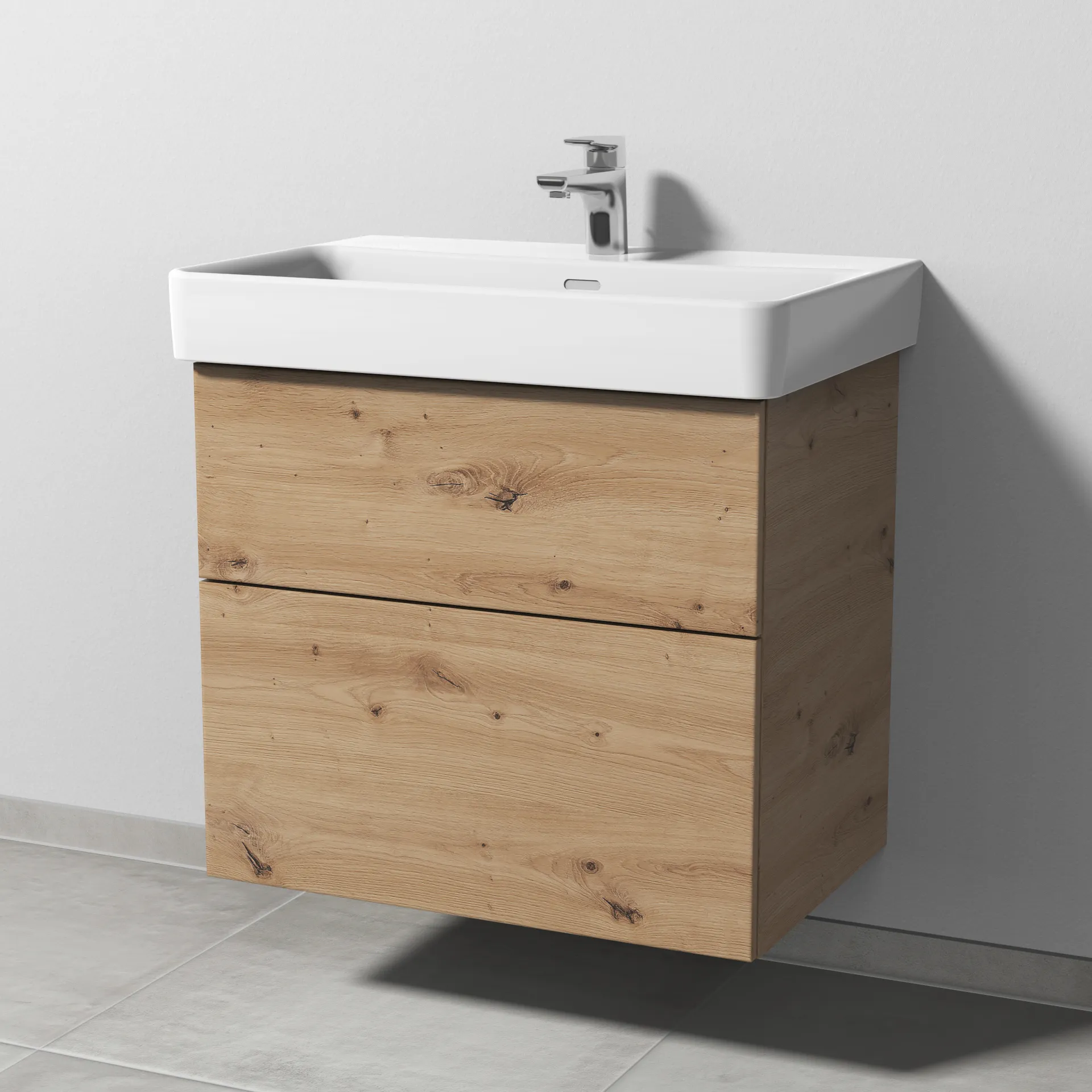 Sanipa Waschtischunterschrank „3way“ passend zu Keramik-Waschtische Pro S von Laufen 650 × 593 × 437 mm in Eiche Natural-Touch, Becken mittig