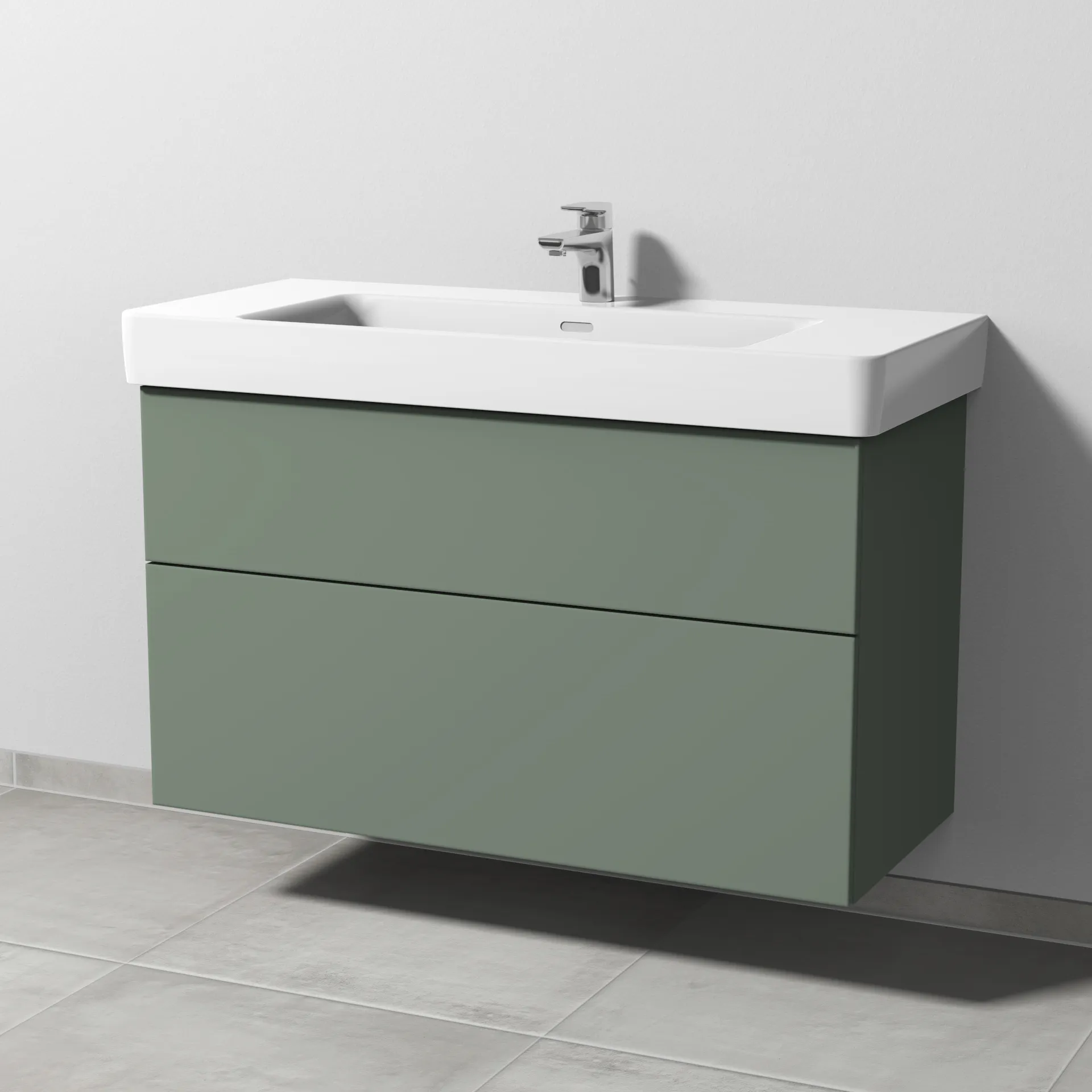 Sanipa Waschtischunterschrank „3way“ passend zu Keramik-Waschtische Pro S von Laufen 1000 × 593 × 437 mm in Soft-Green, Becken mittig