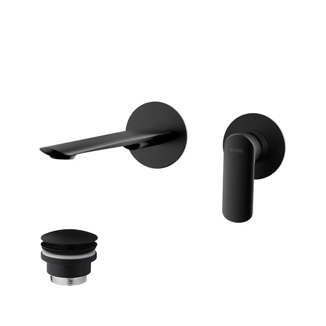 TRIZERATOP Miscelatore lavabo a parete con piletta di scarico (tappo) nero opaco