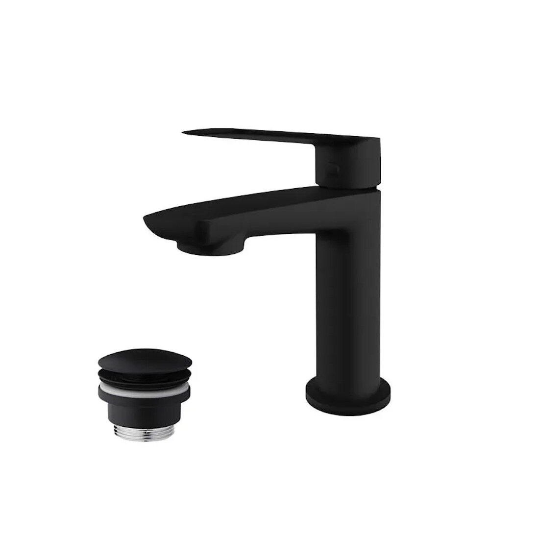 TRIZERATOP Miscelatore lavabo con piletta di scarico (tappo) nero opaco