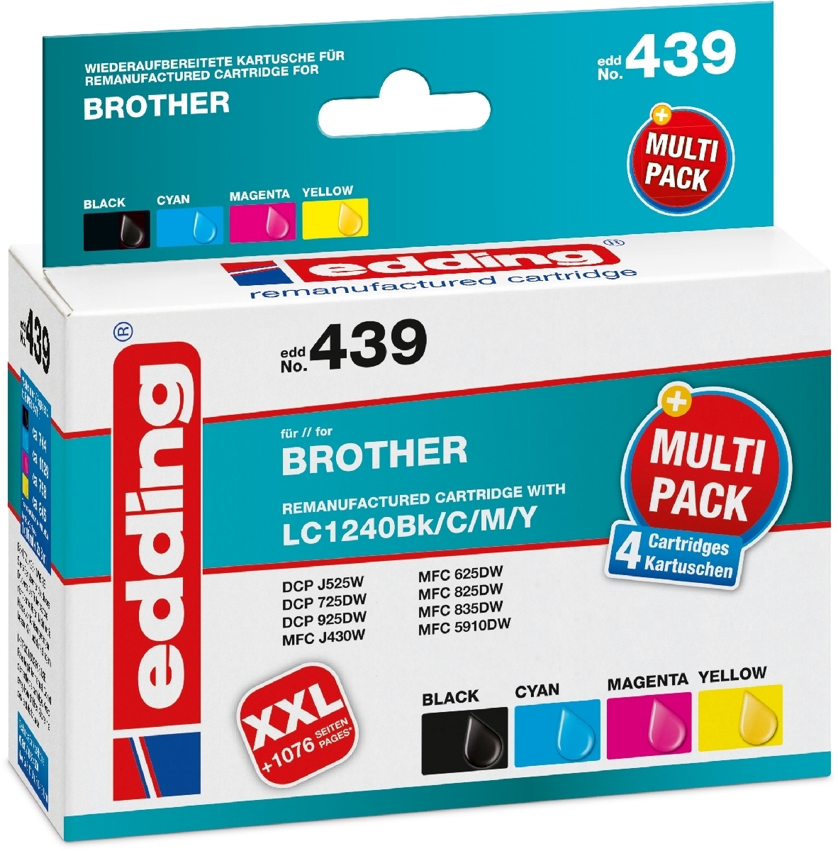 Edding Druckerpatrone 439 MultiPack 4 Stück Brother LC1240 farbig, Ersetzt: Brother LC1240BK/LC1240C/LC1240M/LC1240Y
