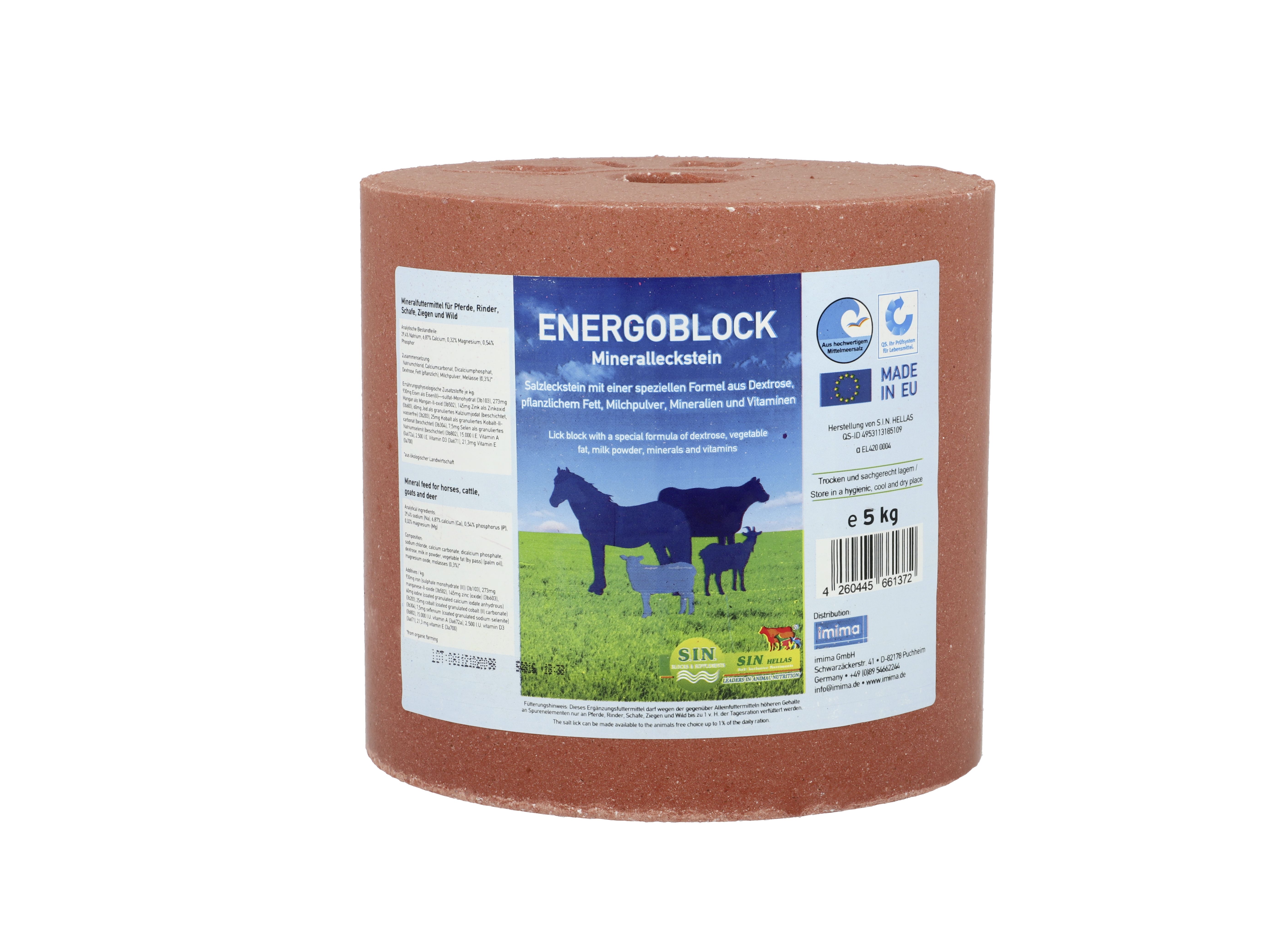 S.I.N. HELLAS ENERGOBLOCK Leckstein aus Meersalz mit dem Extra an Energie durch Dextrose für Pferde, Rinder, Schafe, Ziegen, Wild 5 kg Leckstein