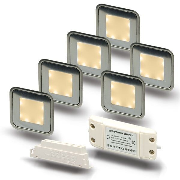 ARGOSeasy - SET: 6x LED (Boden-)Einbaustrahler Edelstahl quadratisch IP54 warmweiß + Netzteil