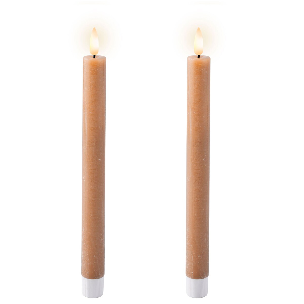 Lumineo 2 LED Kerzen mit Timerfunktion 24cm Wachs - Echtwachskerzen flackernde Flamme Kerzen batteriebetrieben Wachskerzen Stabkerzen Rustik Braun