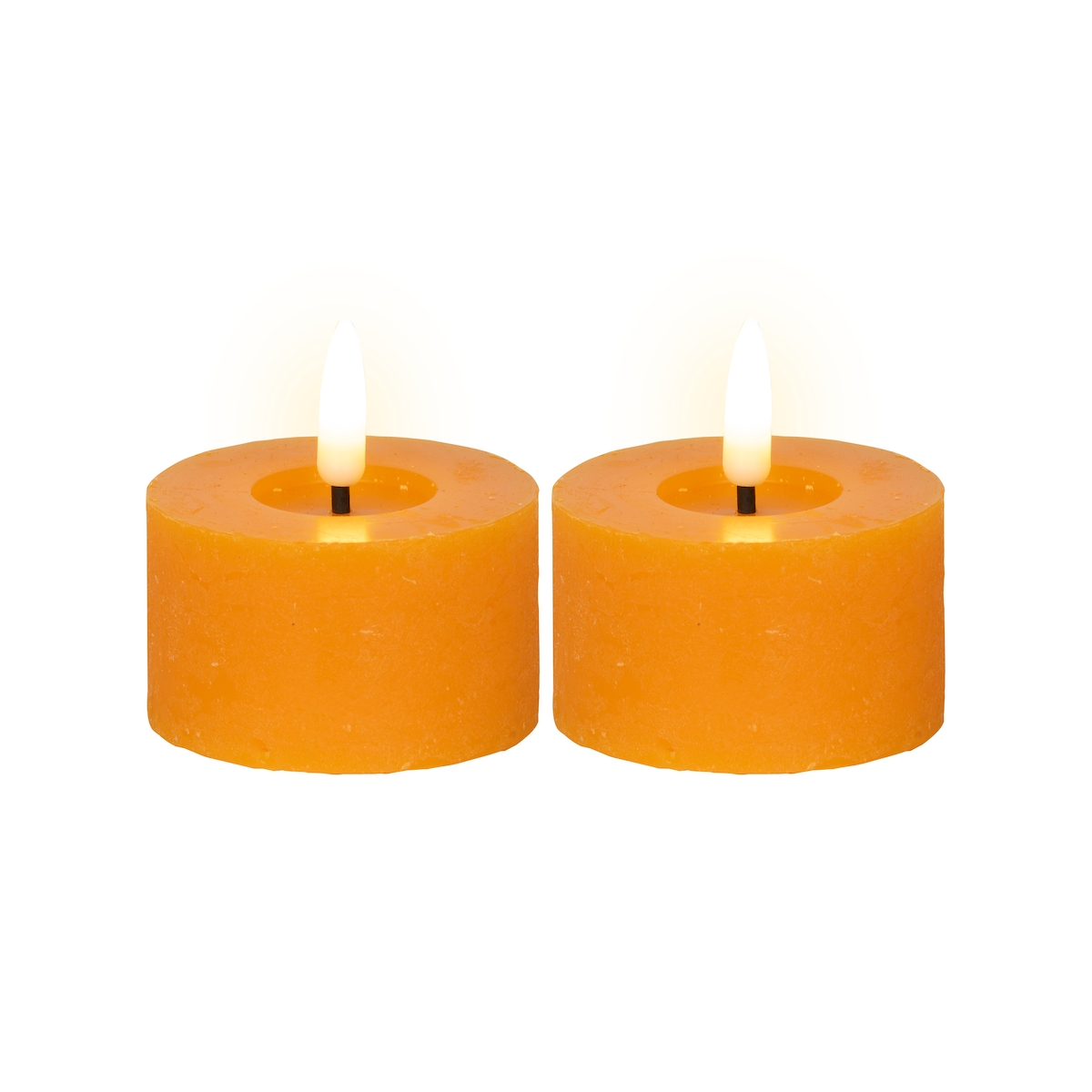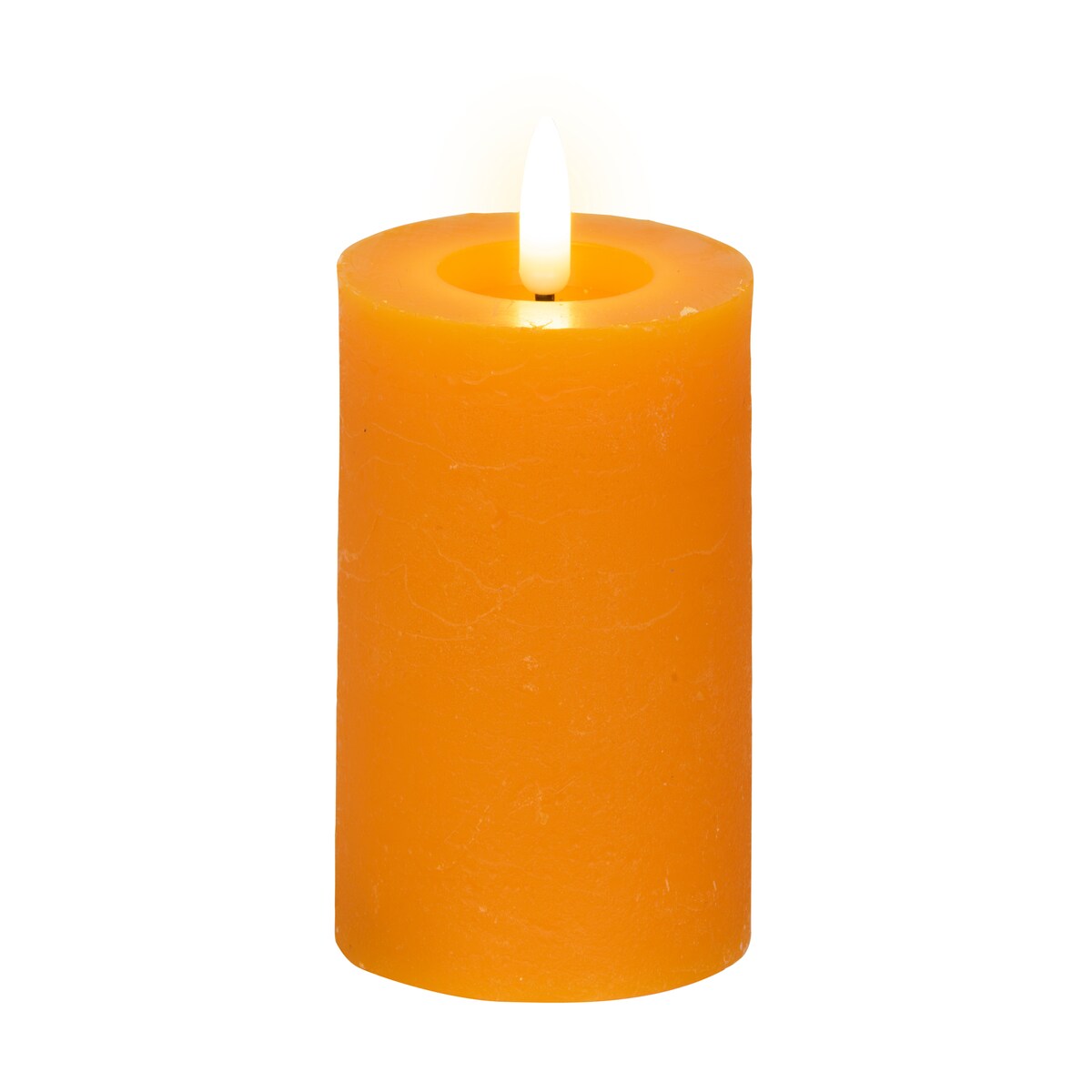 Lumineo LED Kerze mit Timerfunktion 7x11cm Wachs - flackernde Flamme Echtwachskerze Kerzen batteriebetrieben Wachskerze Stumpenkerze Rustik Orange