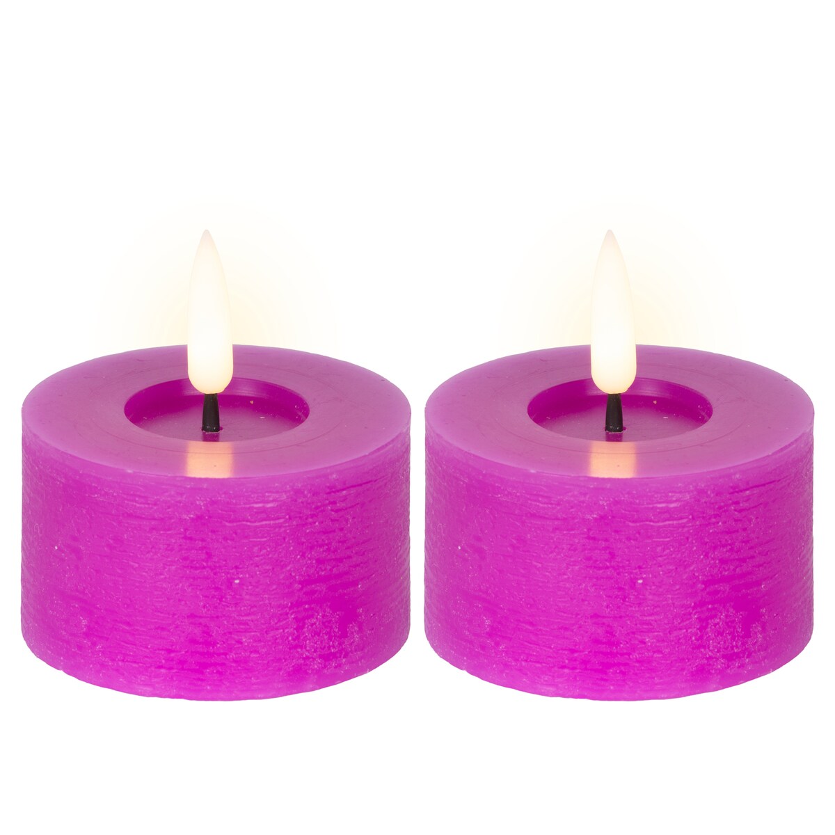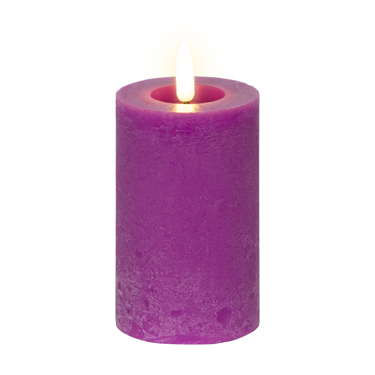 Lumineo LED Kerze mit Timerfunktion 7x11cm Wachs - flackernde Flamme Echtwachskerze Kerzen batteriebetrieben Wachskerze Stumpenkerze Rustik Lila