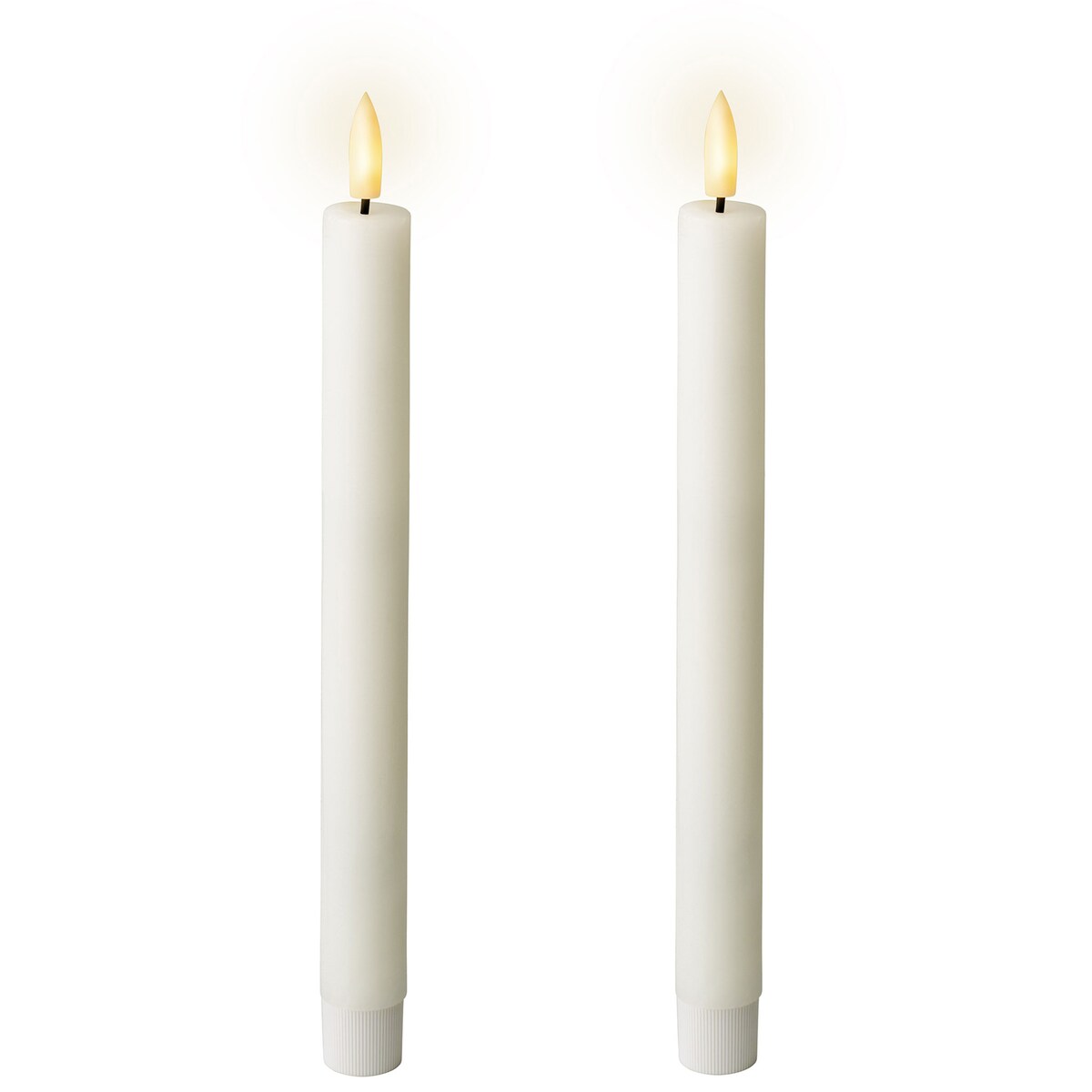 Lumineo 2 LED Kerzen mit Timerfunktion 24cm Wachs - Echtwachskerzen flackernde Flamme Kerzen batteriebetrieben Wachskerzen Stabkerzen Rustik Weiß