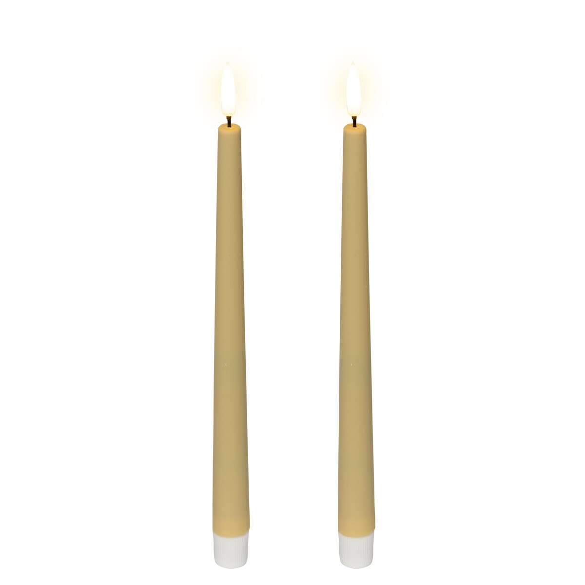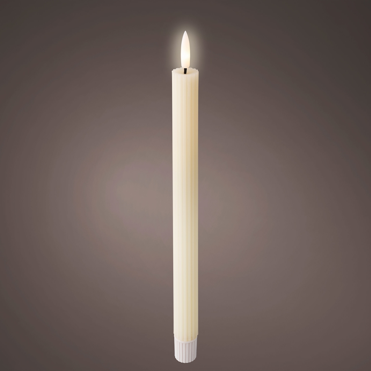 Lumineo 2 LED Kerzen mit Timerfunktion 24,5cm Wachs gerillt - Echtwachskerzen flackernde Flamme batteriebetrieben Wachskerzen Stabkerzen Creme