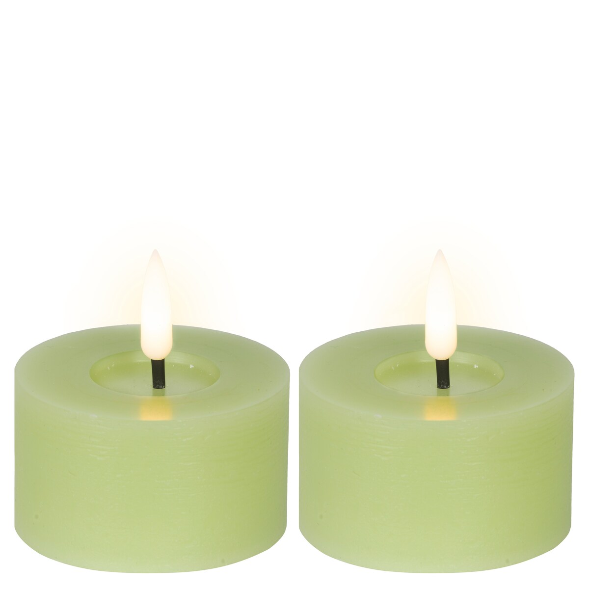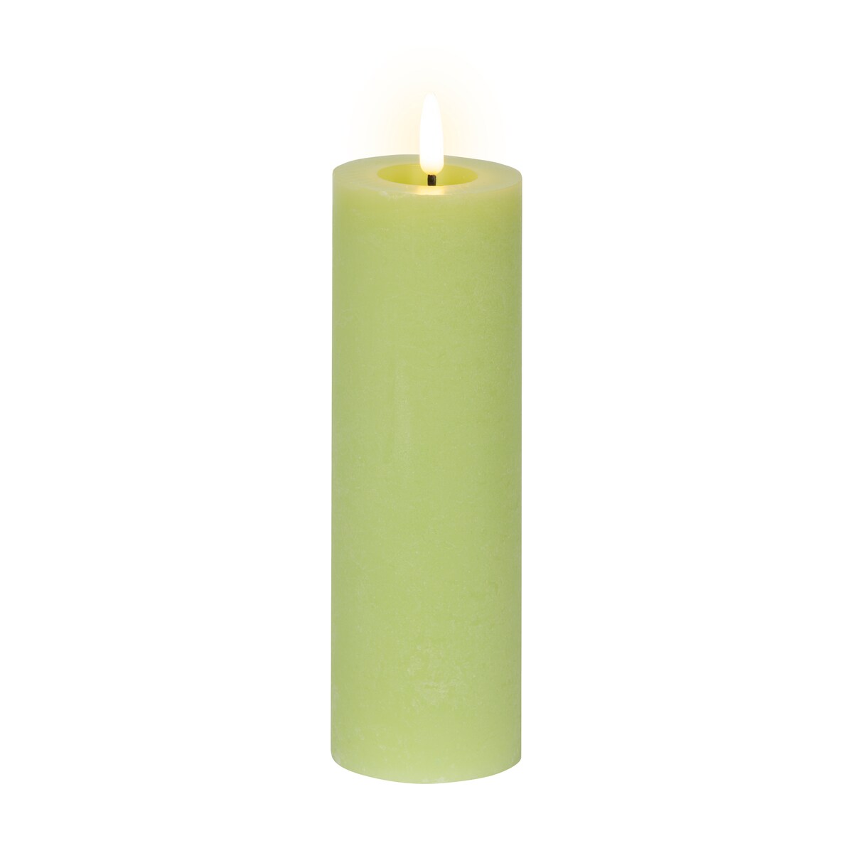 Lumineo LED Kerze mit Timerfunktion 7x19cm Wachs - flackernde Flamme Echtwachskerze Kerzen batteriebetrieben Wachskerze Stumpenkerze Rustik Hellgrün