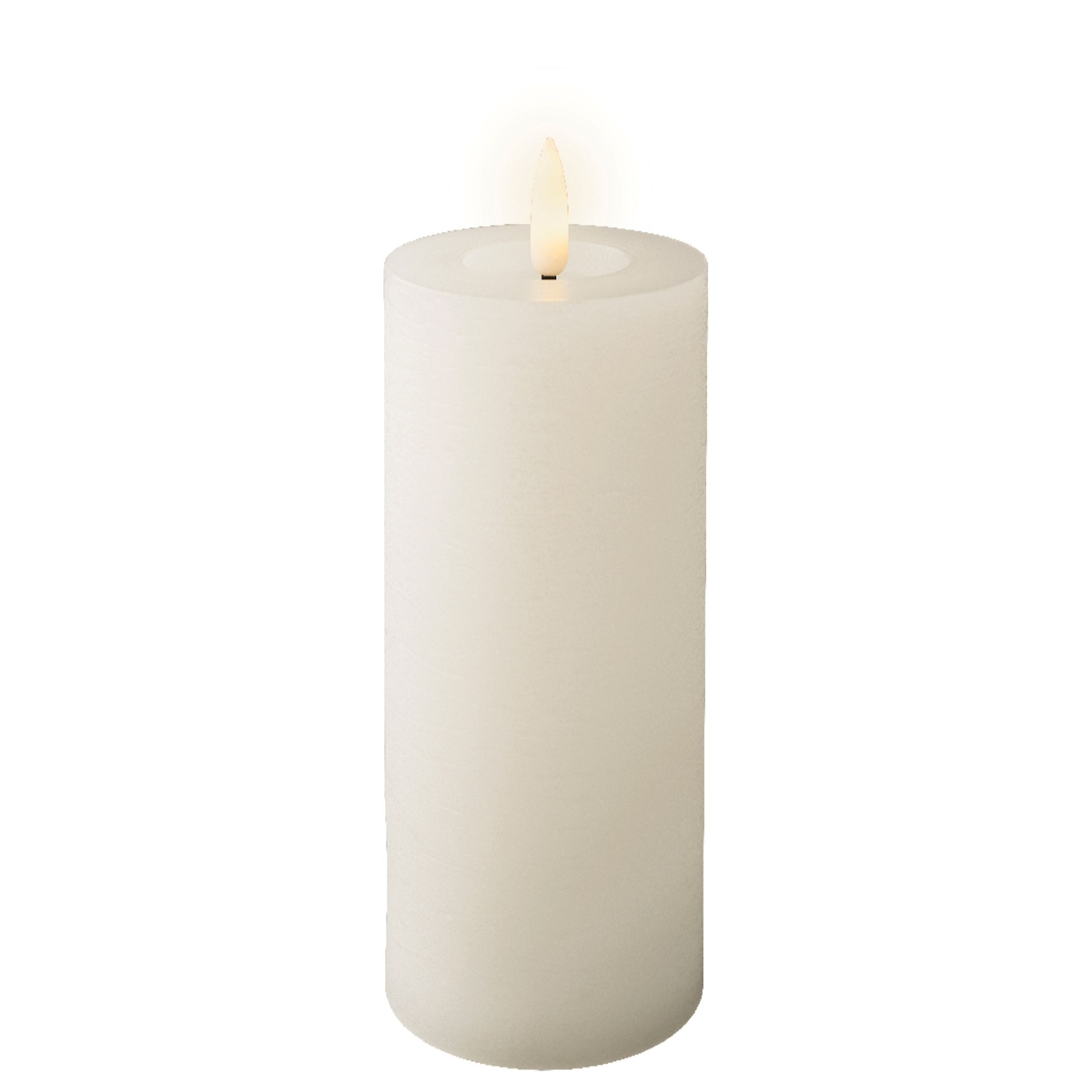 Lumineo LED Kerze mit Timerfunktion 7x15cm Wachs - flackernde Flamme Echtwachskerze Kerzen batteriebetrieben Wachskerze Stumpenkerze Rustik Creme