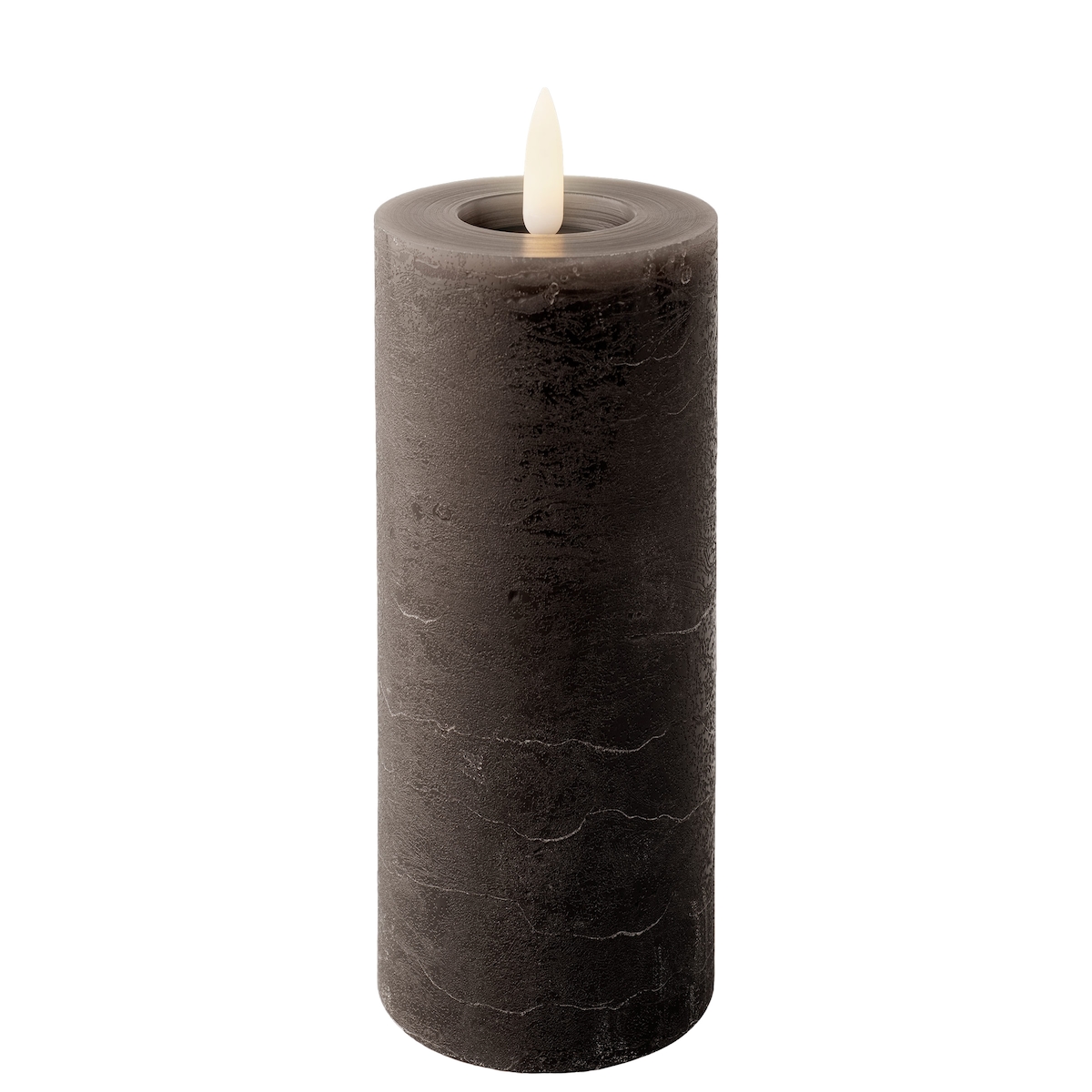 Lumineo LED Kerze mit Timerfunktion 7x15cm Wachs - flackernde Flamme Echtwachskerze Kerzen batteriebetrieben Wachskerze Stumpenkerze Rustik Grau