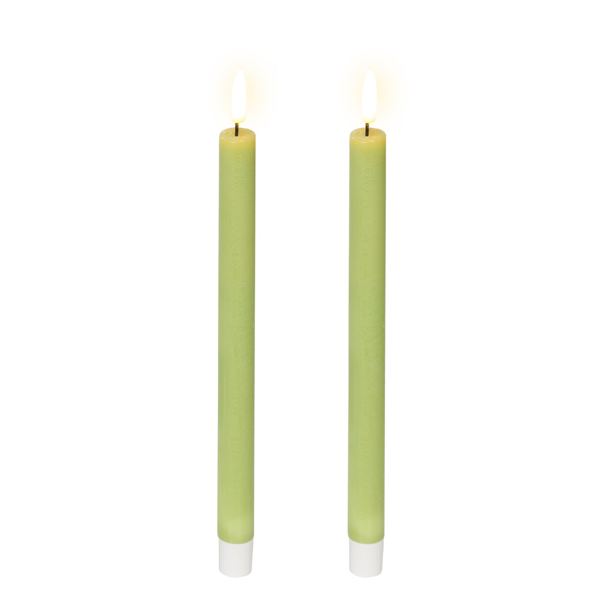 LED Kerzen mit Timer 24,5cm Wachs 2er Set Hellgrün / Warmweiß