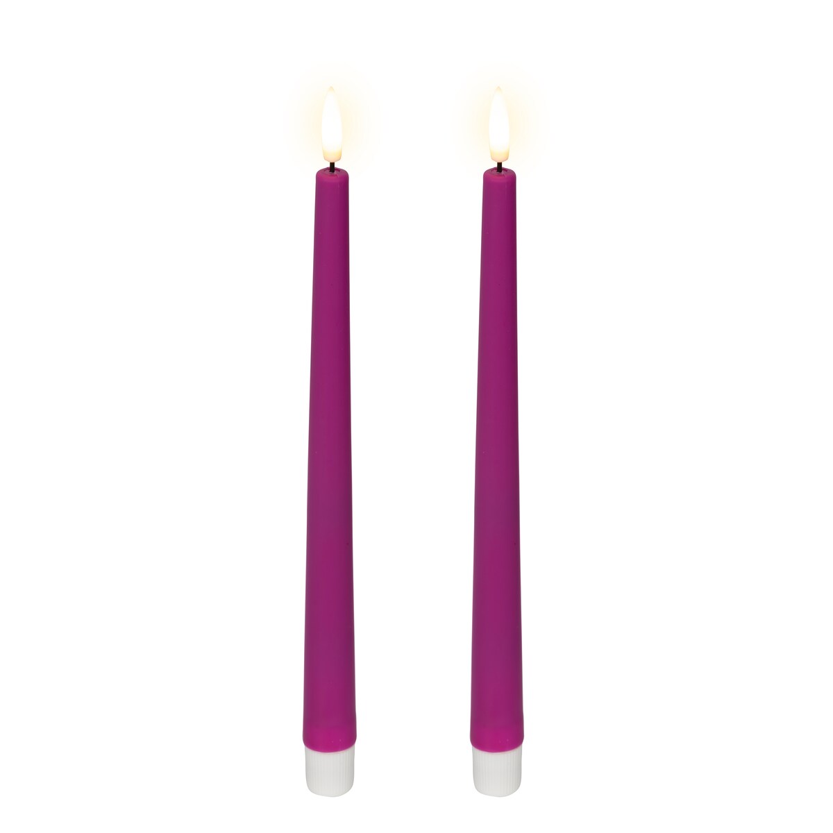 LED Kerzen mit Timer 24,5cm Wachs 2er Set Lila / Warmweiß