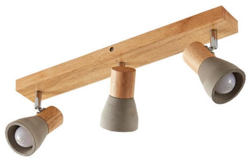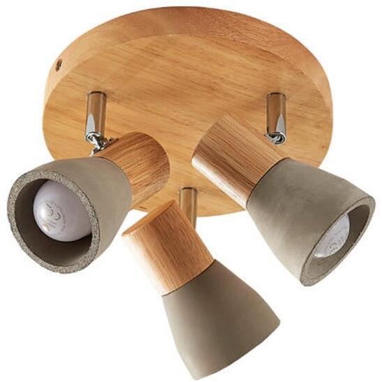 Brumberg BOLORIA Decken-Anbauleuchte, für 3 x E14-LED-Retrofit-Lampen, mit Holzgehäuse rund und Betonschirm, holz hell / beton matt (57175730)