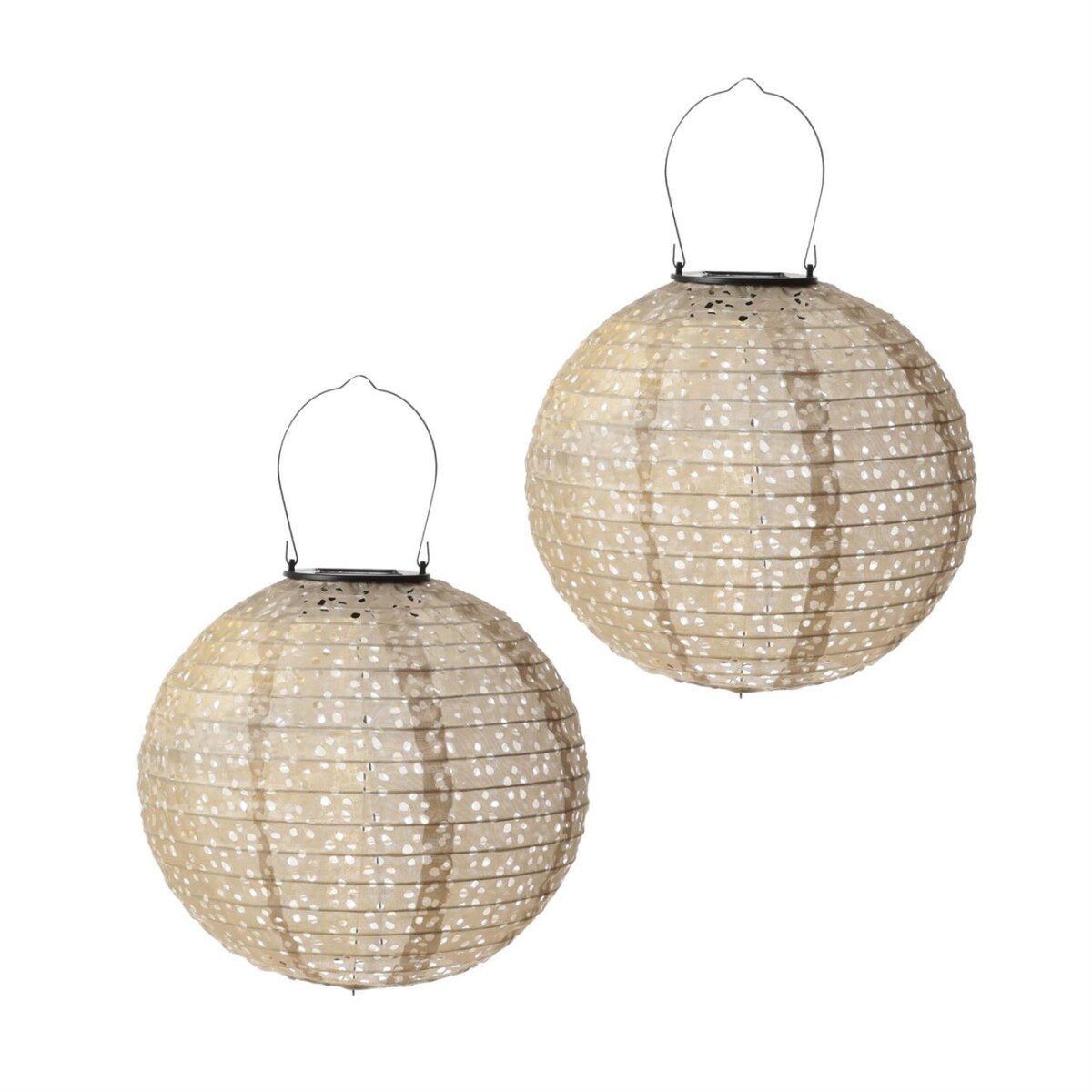 2er Set LED Solar Außen-Hängeleuchte, Lampion weiß, D 30 cm