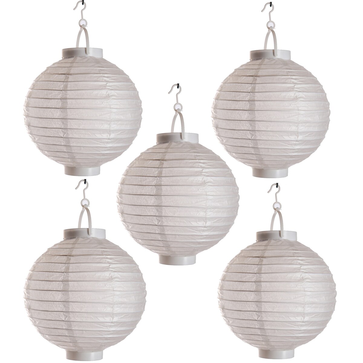 MARELIDA LED Lampion kaltweiße LED 30cm Kugel Laterne Partylampion 5er Set weiß
