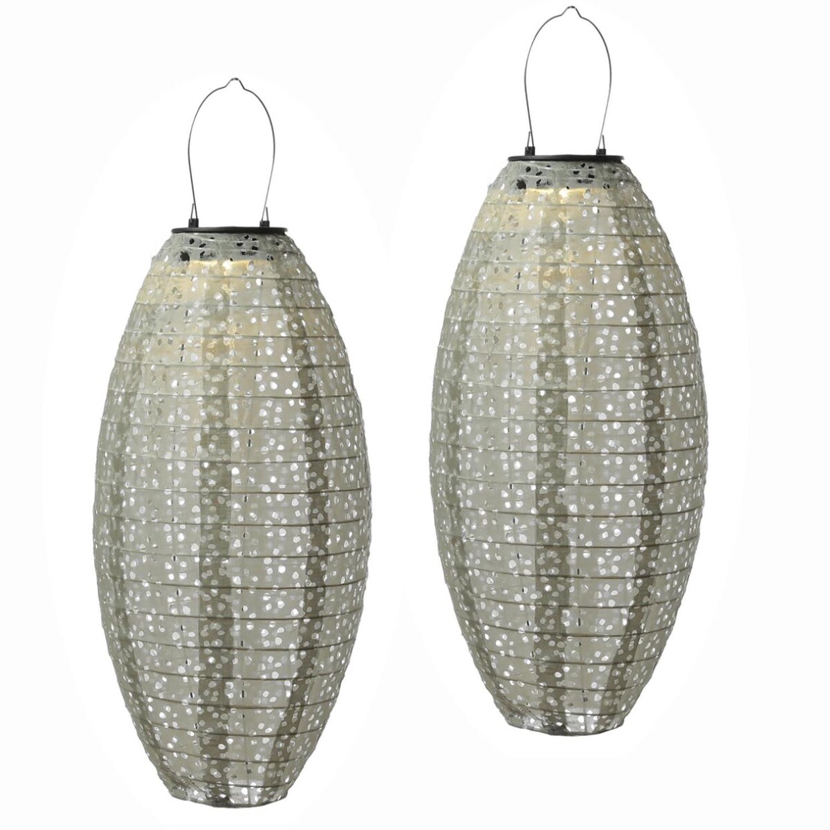 LED Solar Lampions oval - warmweiße LED - H: 33cm - D: 22cm - Lichtsensor - weiß - 2er Set