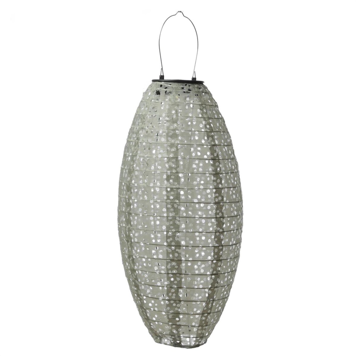 LED Solar Lampion oval - mit Blumenmuster - warmweiße LED - H: 40cm - D: 20cm - Lichtsensor - grün