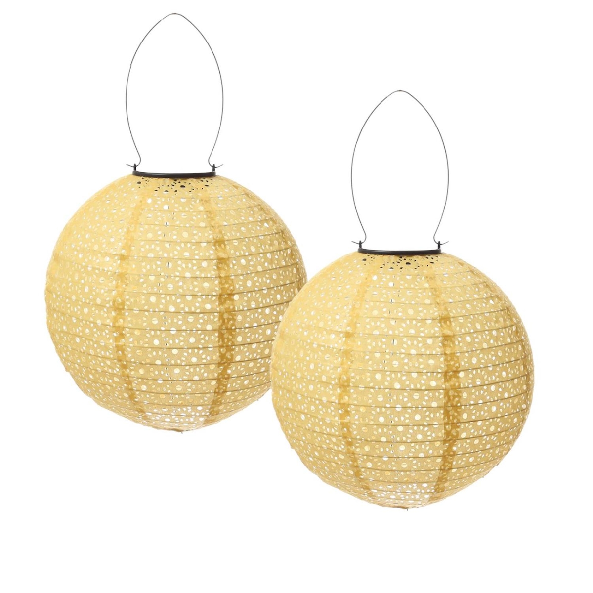 LED Solar Lampions - mit Blumenmuster - warmweiße LED - D: 25cm - Lichtsensor - beige - 2 Stück