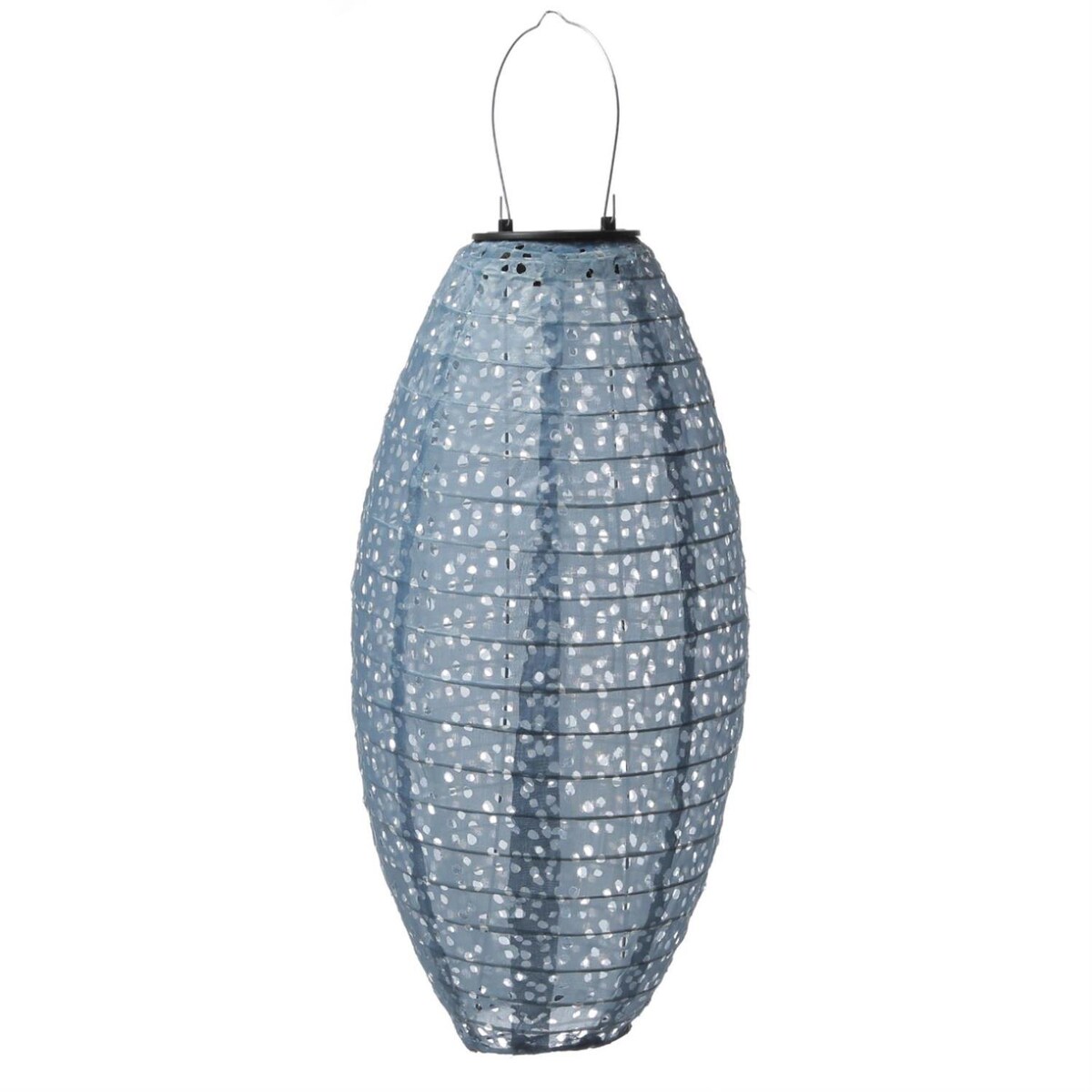 LED Solar Lampion oval - mit Blumenmuster - warmweiße LED - H: 38cm - D: 23cm - Lichtsensor - blau