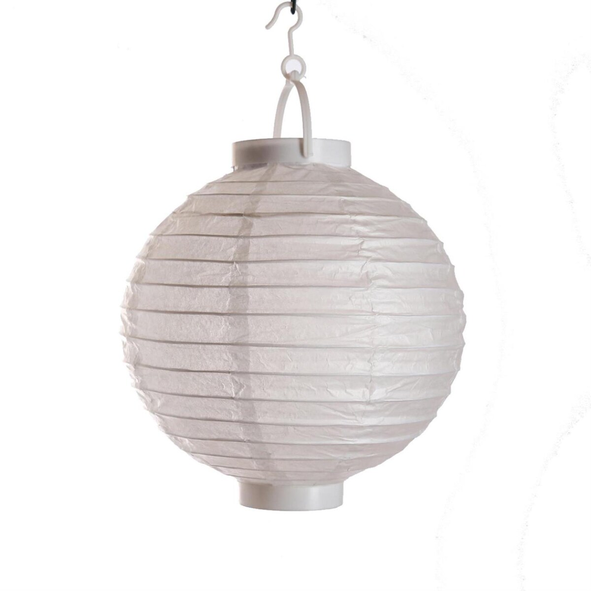 LED Solar Lampion - warmweiße LED - H: 35cm - D: 40cm - Lichtsensor - weiß