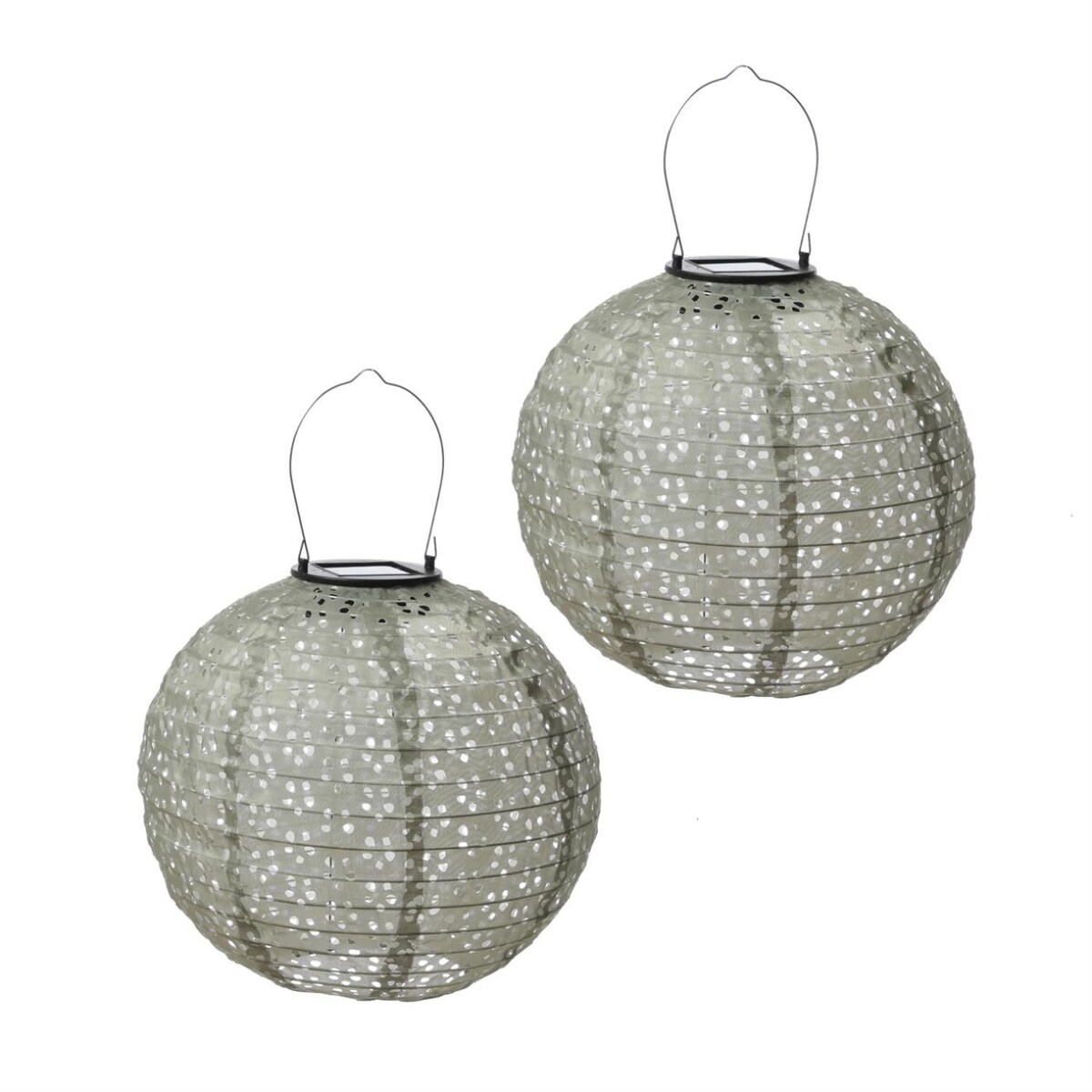 LED Solar Lampion - mit Blumenmuster - H: 25cm D: 25cm - Lichtsensor - salbeigrün - 2er Set