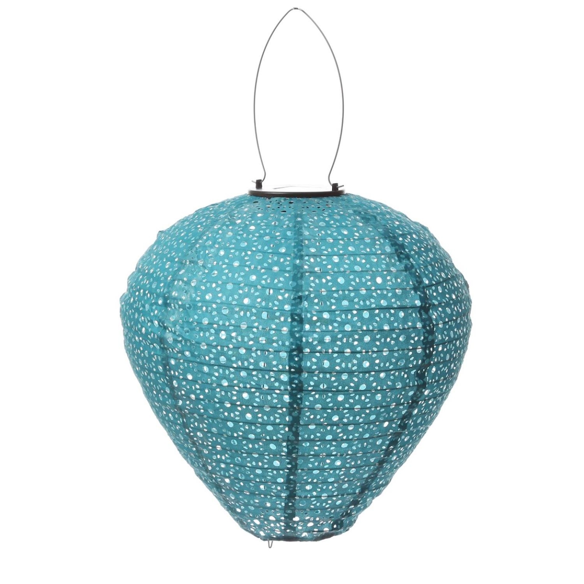 LED Solar Lampion FESTIVAL - kaltweiße LED - D: 20cm - Dämmerungssensor - mit Montagehaken - blau