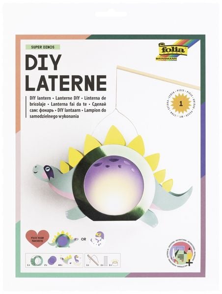 FOLIA Bastelartikel Laternen-Bastelsets SUPER DINOS, inkl. 1 LED-Licht und Batterien