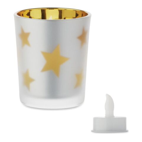Werbeartikel LED-Teelicht im Glashalter LANDLE - golden gg. Aufpreis mit Logo bedrucken