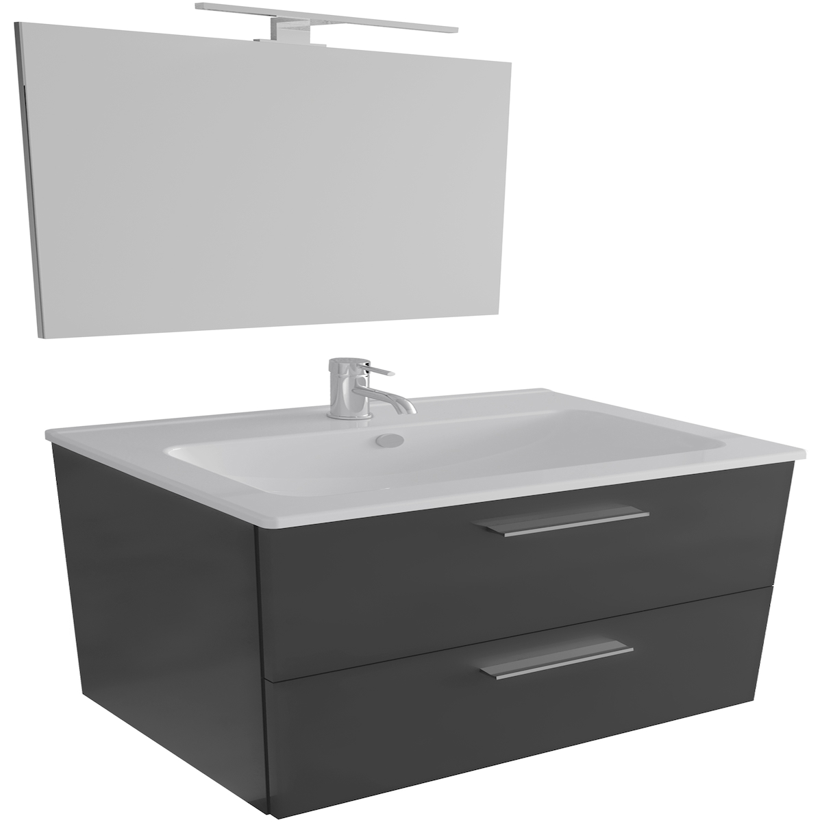 Vitra Modernes Badezimmer Set Waschbecken mit Unterschrank und LED-Spiegel | Waschbeckenunterschrank vormont. | Keramik Waschtisch SoftClose-Funktion