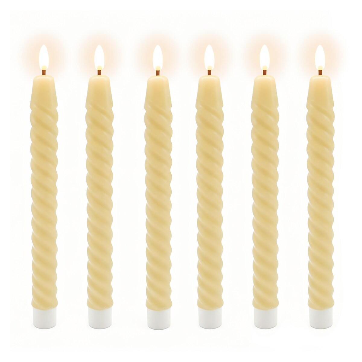 Relaxdays LED Stabkerzen, 6er Set, HxD: 25 x 2 cm, flackernde Flamme, Echtwachs, gedreht, flammenlose Kerzen, beige