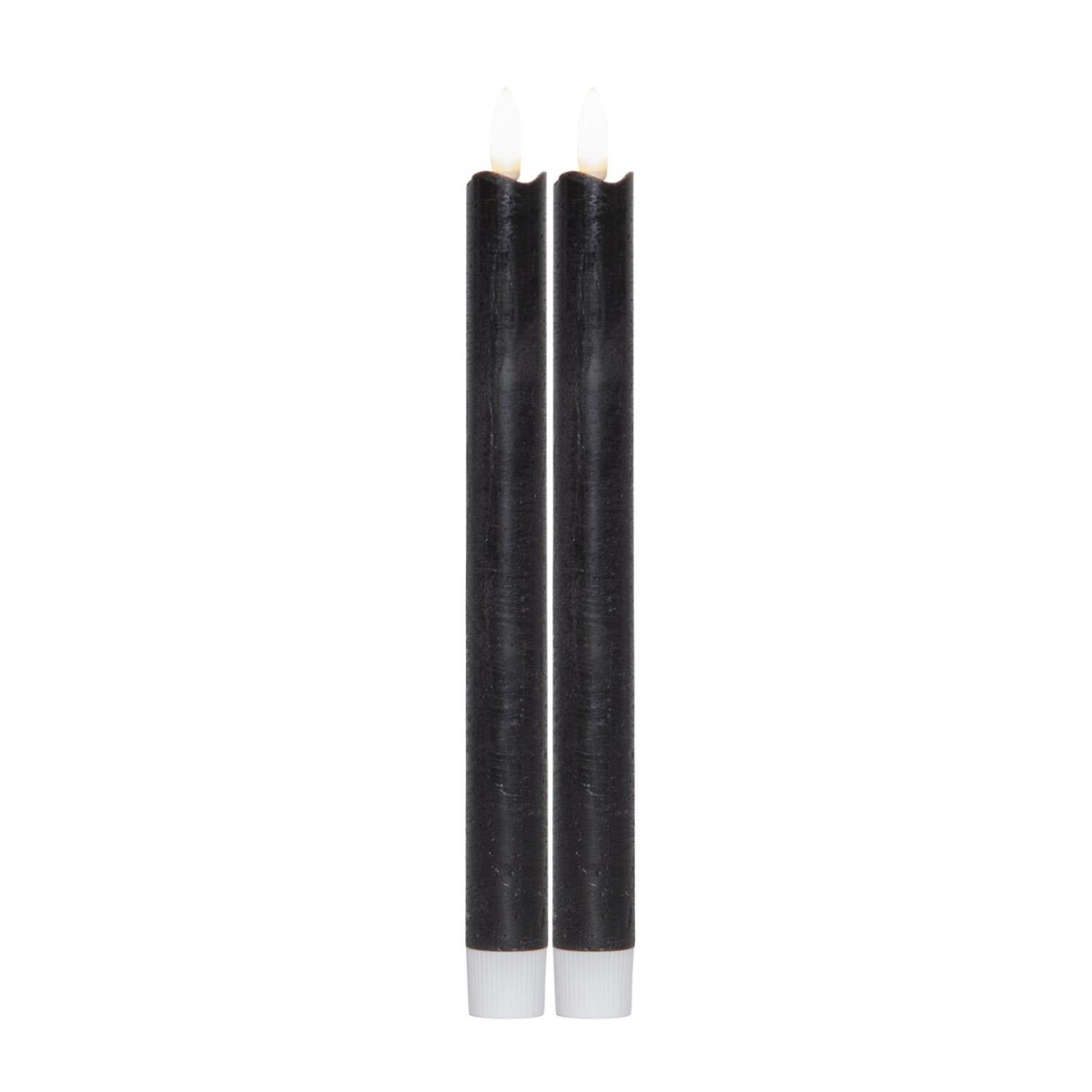 LED Stabkerzen ELLA - Echtwachs - realistische 3D Flamme - H: 38cm - schwarz - 2 Stück