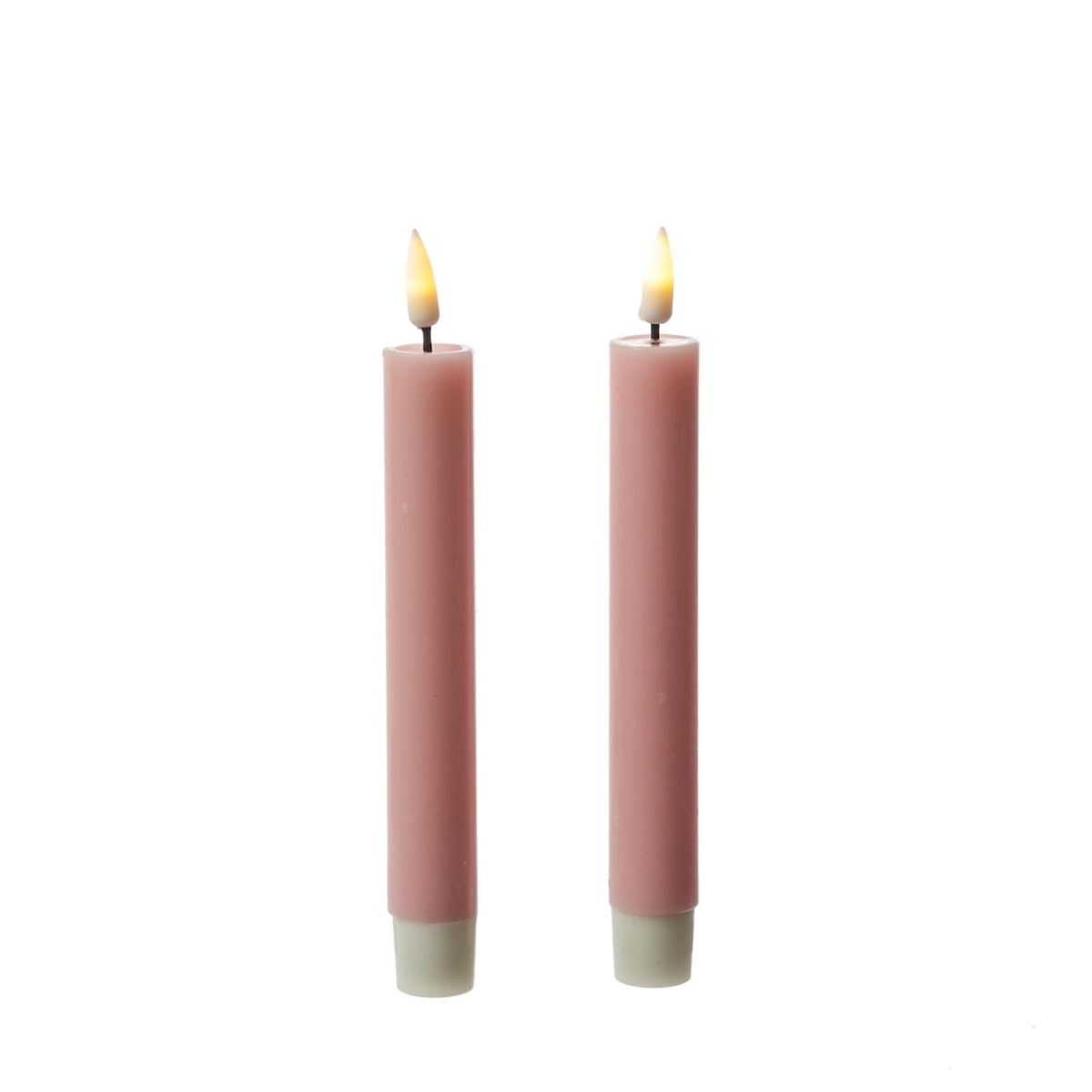LED Stabkerzen MIA - Echtwachs - realistische 3D Flamme - H: 15cm - Batteriebetrieb - rosa - 2 Stk