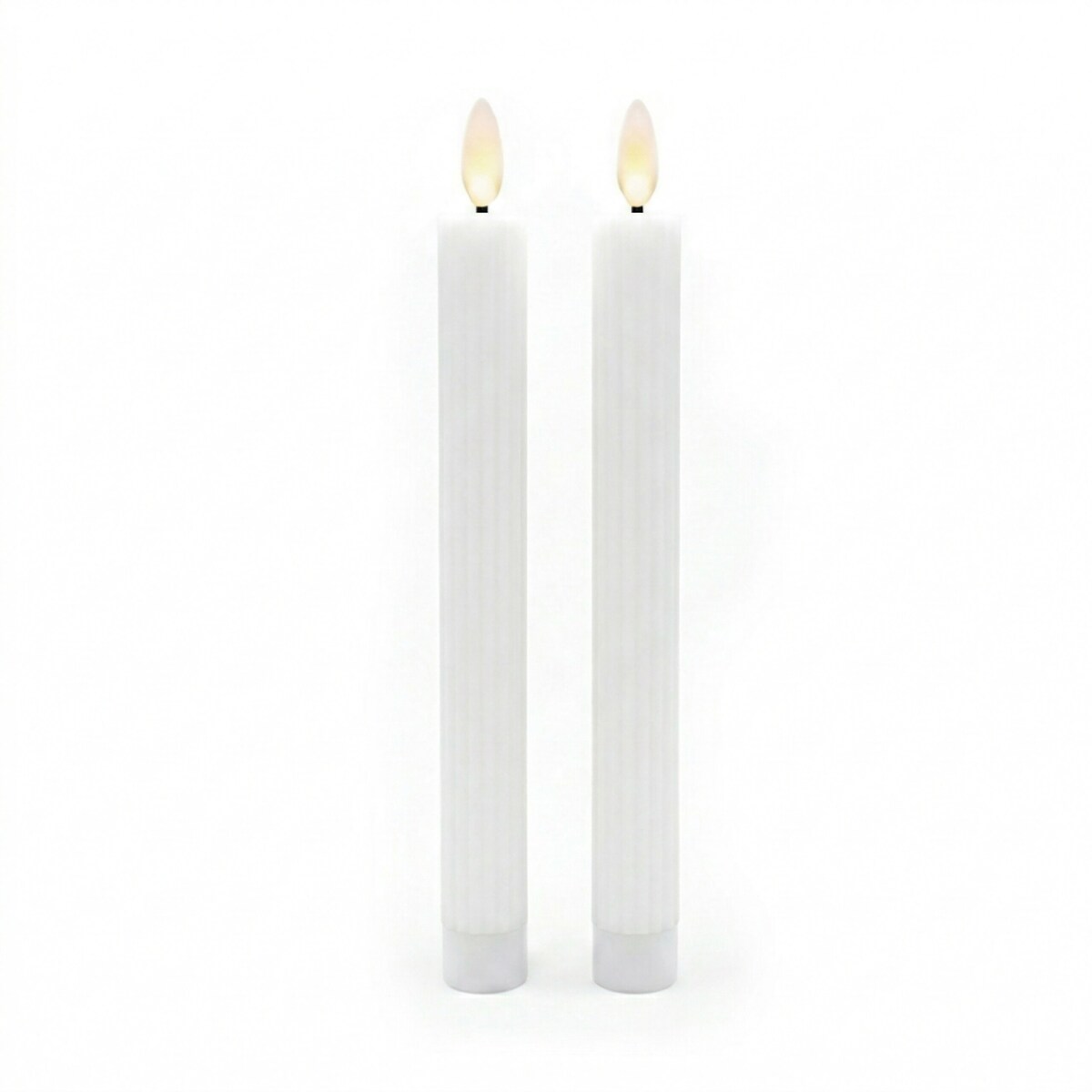 Stabkerzen LED mit Timer WEISS 2er indoor mit 6 Stunden Timer - ECHTWACHS gerippt 23cm Höhe für Kerzen 2,2cm Durchmesser 2 AAA Batterien notwendi...