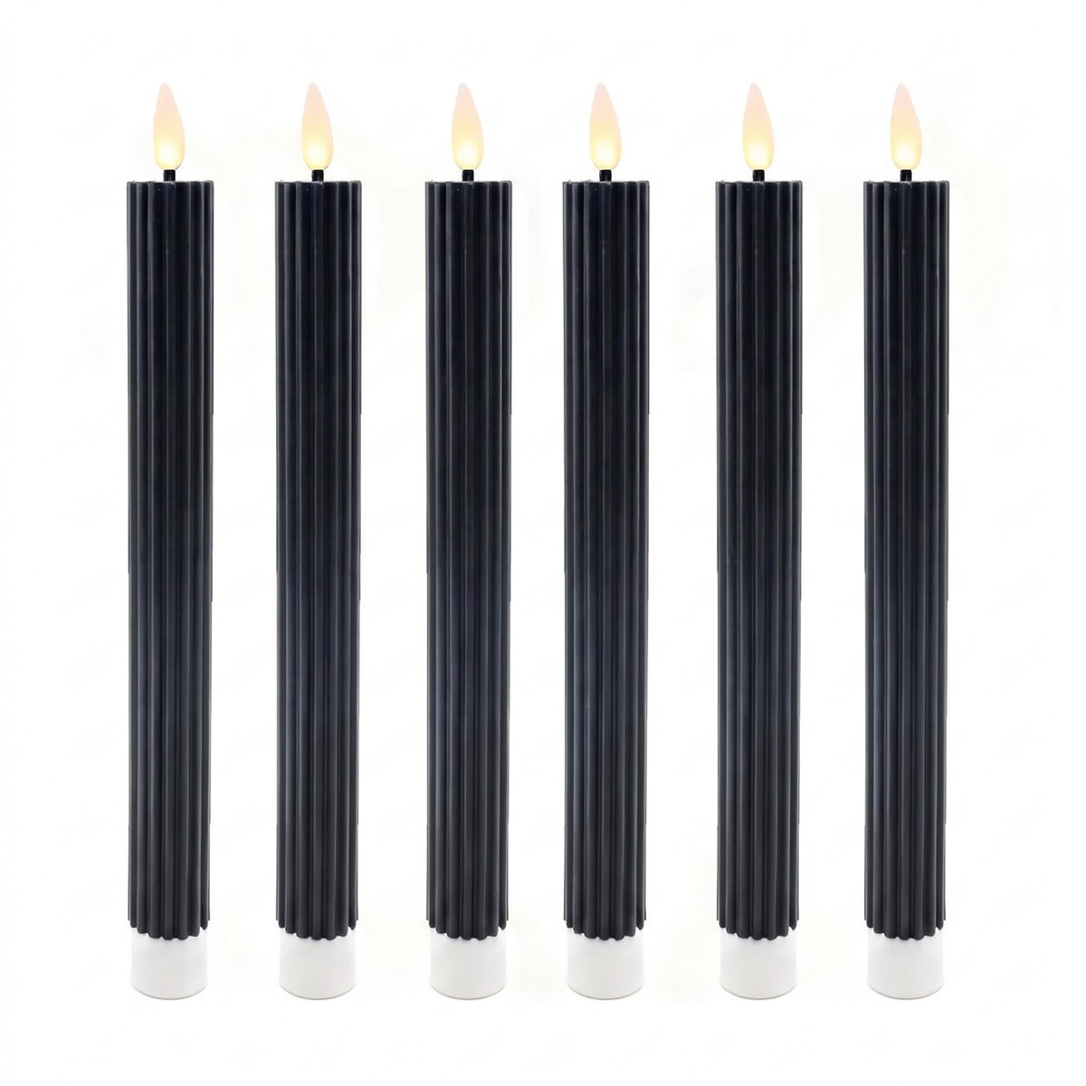 Relaxdays LED Stabkerzen, 6er Set, HxD: 25 x 2 cm, flackernde Flamme, Echtwachs, mit Rillen, flammenlose Kerzen, schwarz