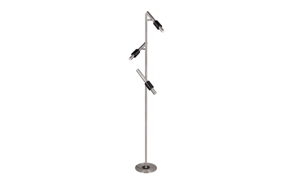 BRILLIANT LED Standleuchte Lea | zeitlose Stehleuchte | 3-flammig | Metall/Glas | eisen/chrom/weiß | Köpfe schwenkbar | 3x E14 max 4 W