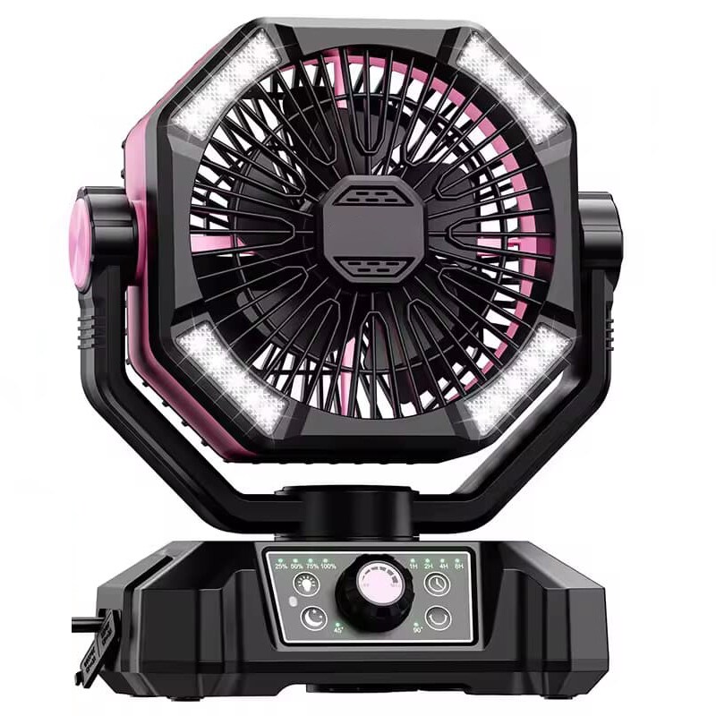 Tragbarer Ventilator mit 20000 mAh Akku und LED-Taschenlampe - Pink