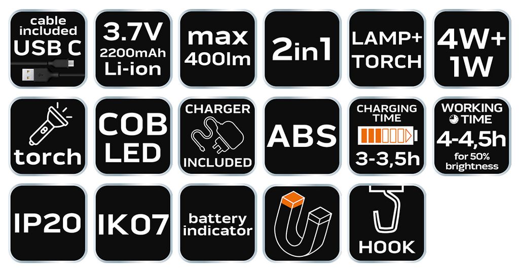 NEO TOOLS LED Work Light, LED Arbeitsleuchte Werkstatt Worklight Handlampe Magnet Werkstattlampe