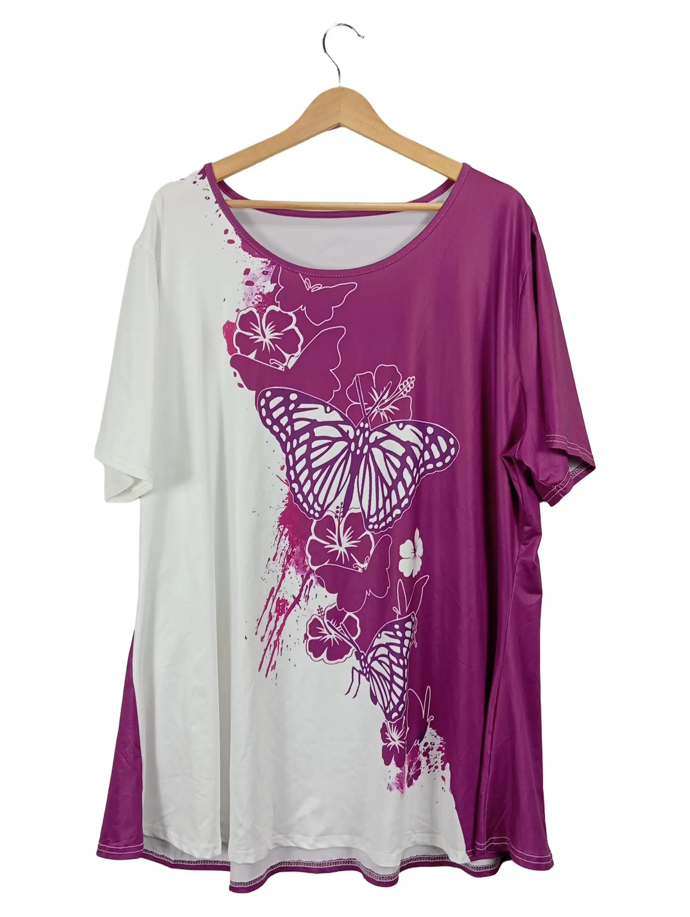 EMERY ROSE Damen Leggings Gr. 50 Lila Schmetterlings Blumen Muster Komfortabel