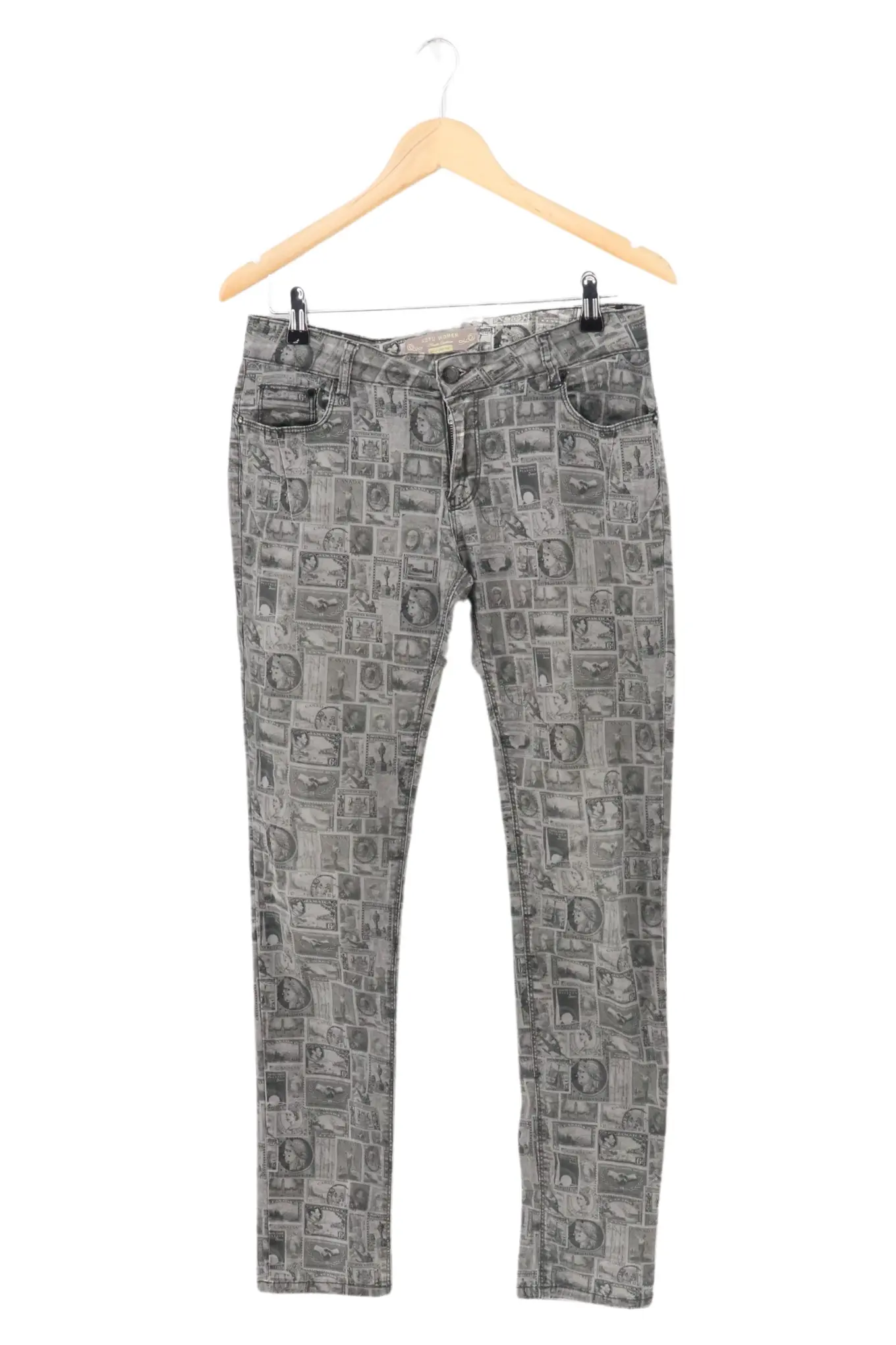KETU Damen Jeans Straight Leg Gr. 36 Grau Urban Streetwear Grafisches Muster