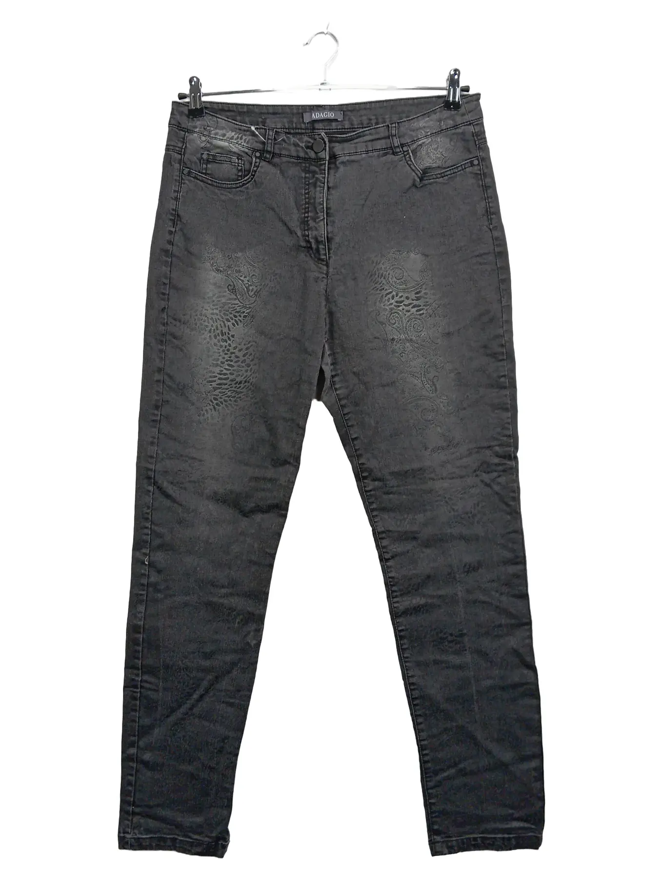 ADAGIO Damen Jeans Straight Leg Gr. 44 Grau Paisley Muster Stretch