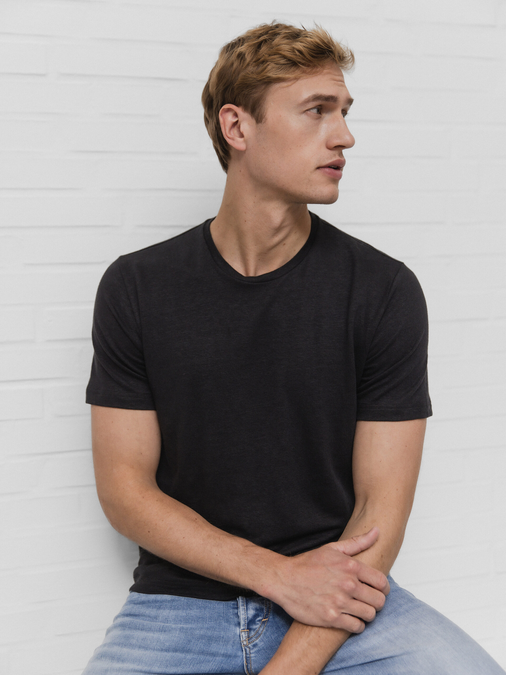 Herren Leinen T-Shirt ANDY in Schwarz aus Leinen – nahtarm