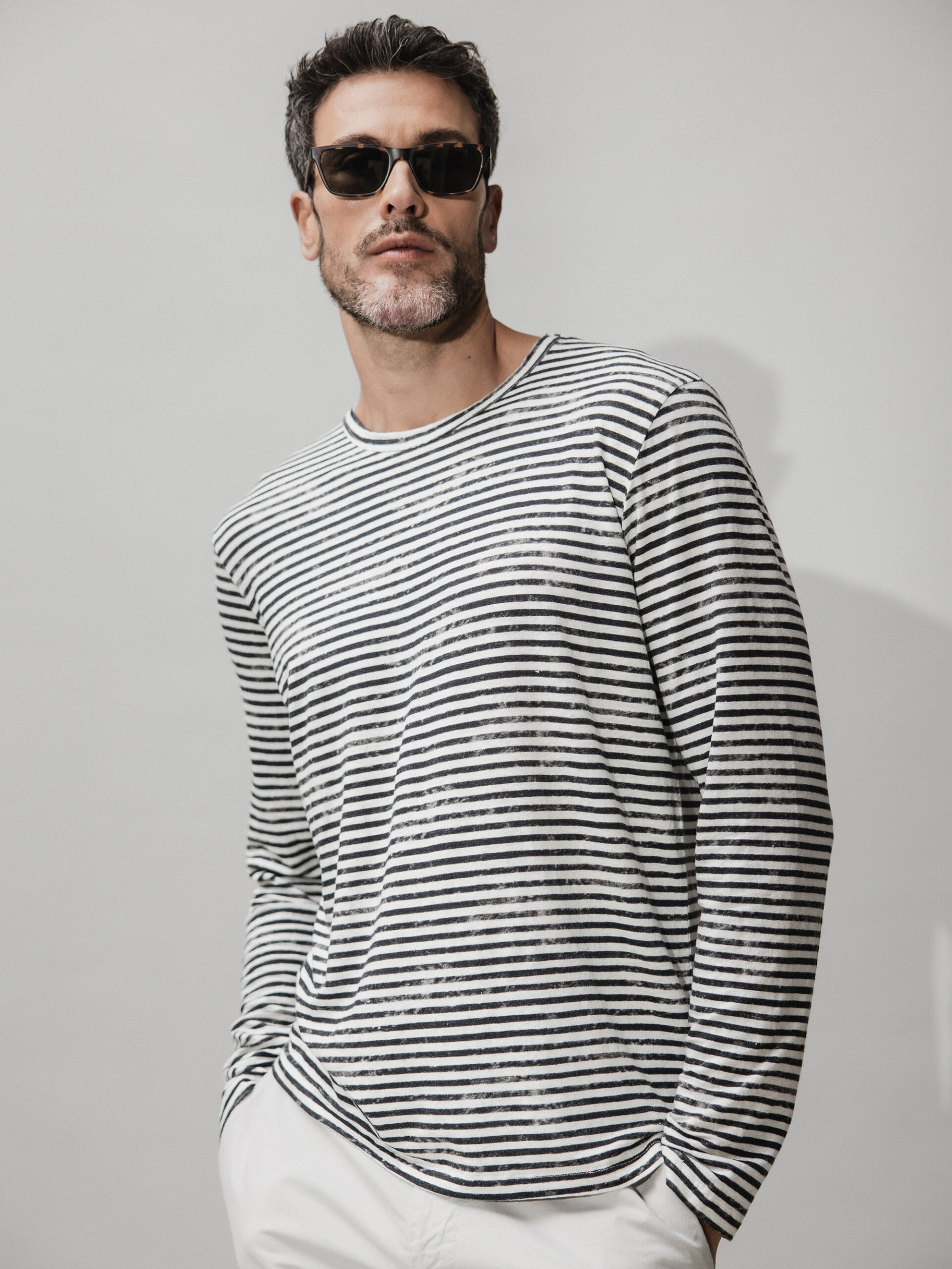 STEFAN BRANDT T-Shirt aus Leinen Herren (07800 NAVY ECRU)