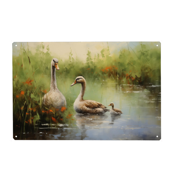 Holzbild "Entenfamilie" artboxONE - Natur,Tiere - Tier,Kunst,Baby,Leinwand,Ente,Familie,Impressionistisch,Natur,öl,Gemälde,Wildnis,Tierwelt