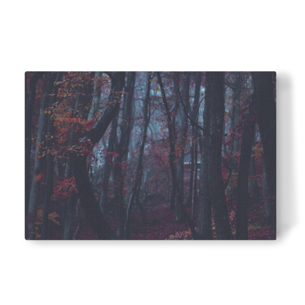 Leinwandbild ️ Herbstfarben im nebligen Wald | Hochformat | wandbild.com 150 x 200 / Stärke 4 cm