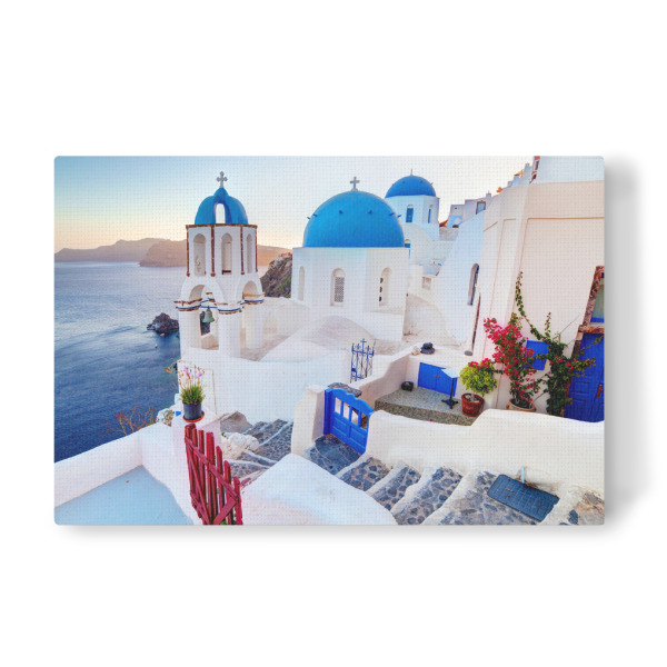 Leinwandbild "Oia town on Santorini island, Greece at sunset. Rocks on Aegean" artboxONE - Reise