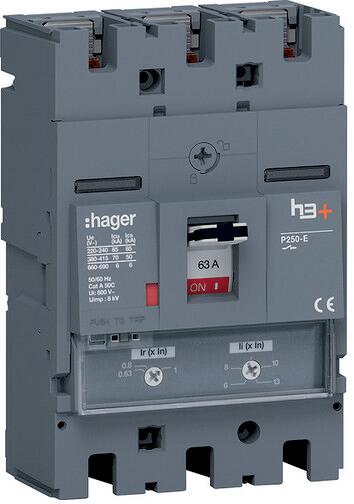 Hager HET063DR Leistungsschalter h3+ P250 TM ADJ 3P3D 63A 70kA FTC